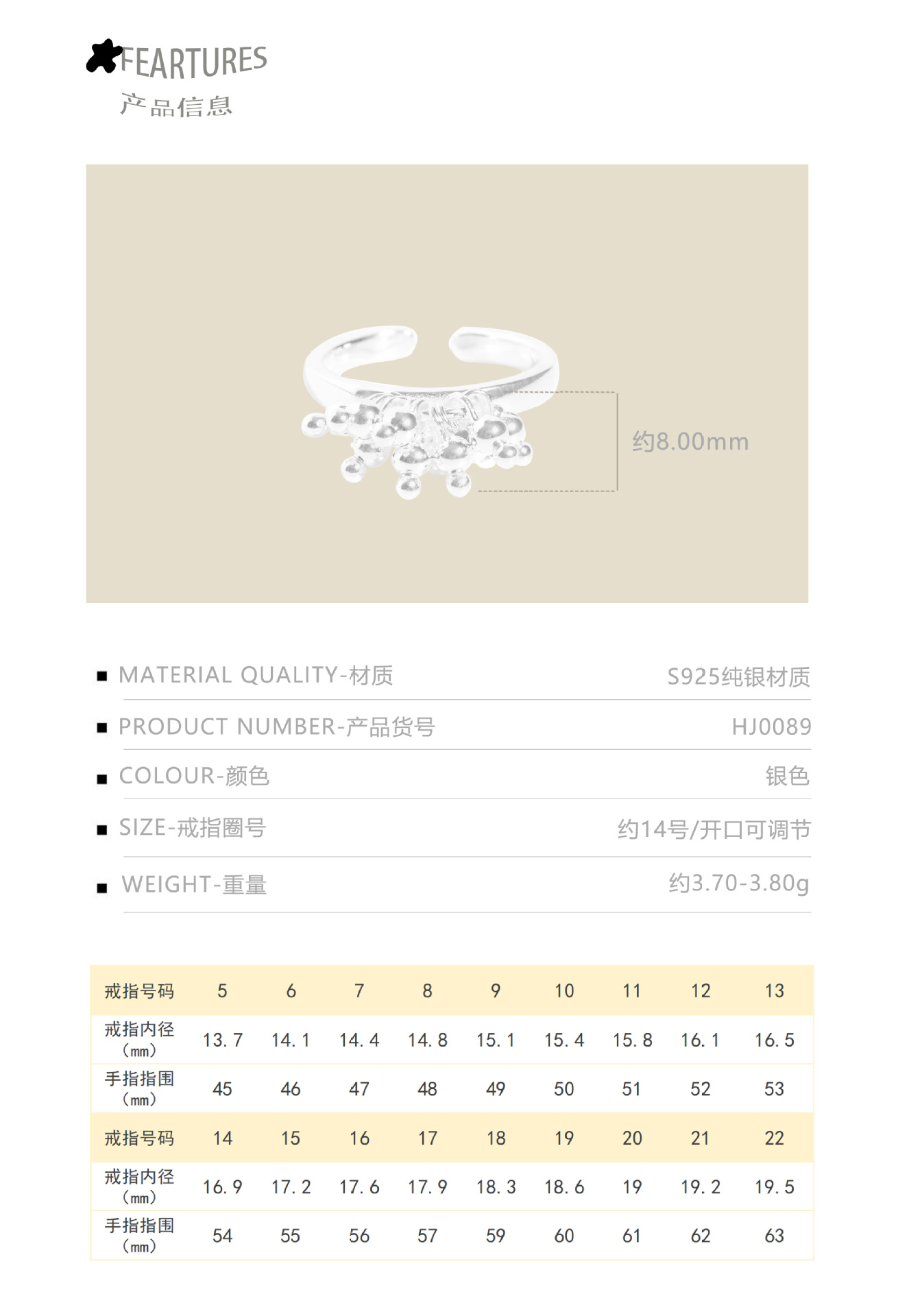 0089 Korean style handmade fruit string ring sterling silver S925 female niche original design light luxury temperament all-match