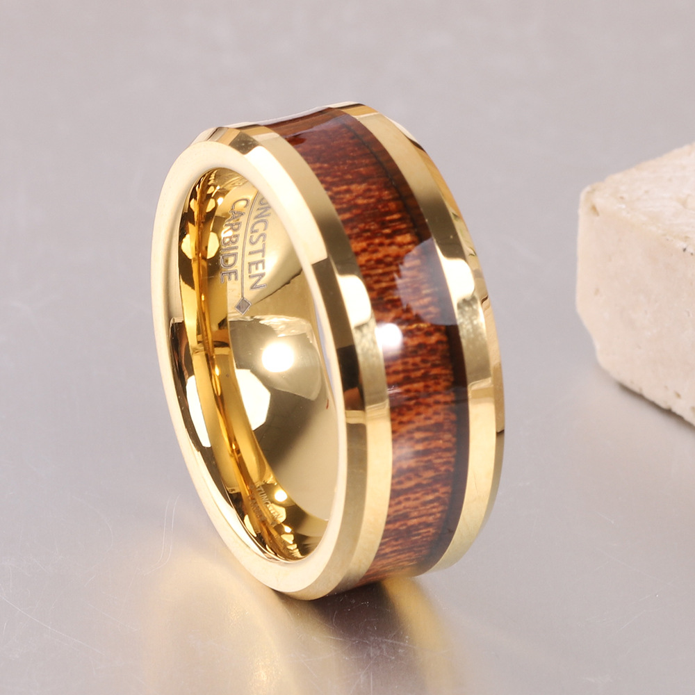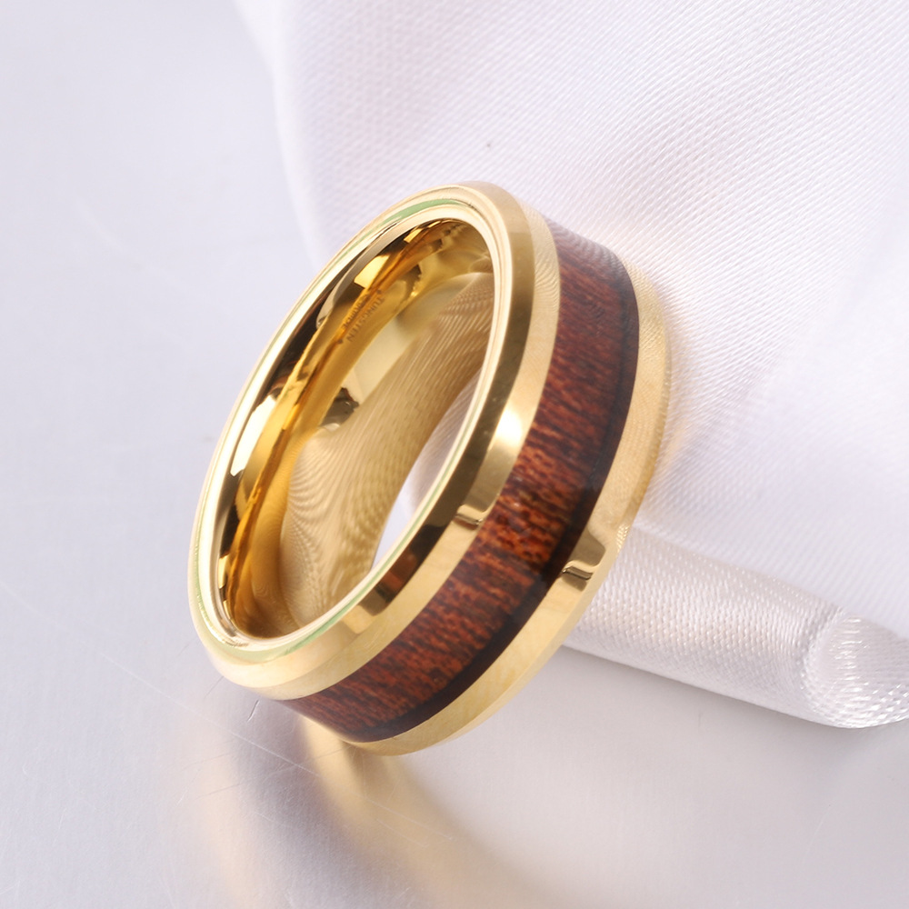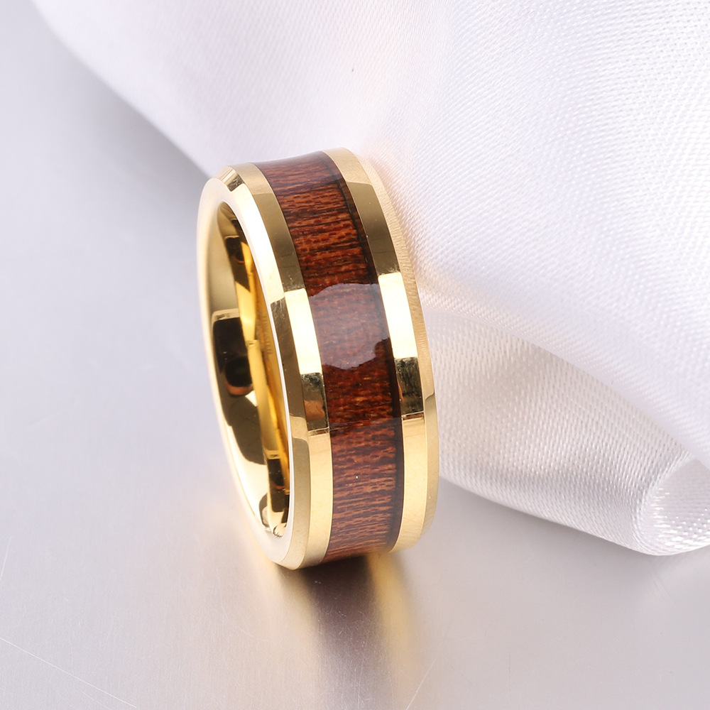 European and American new cross-border 8mm wood grain 18K gold personality ring tungsten steel stainless steel ring factory wholesale jewelry for women
