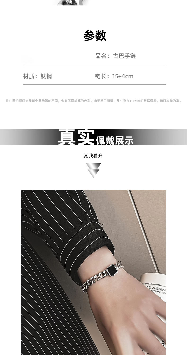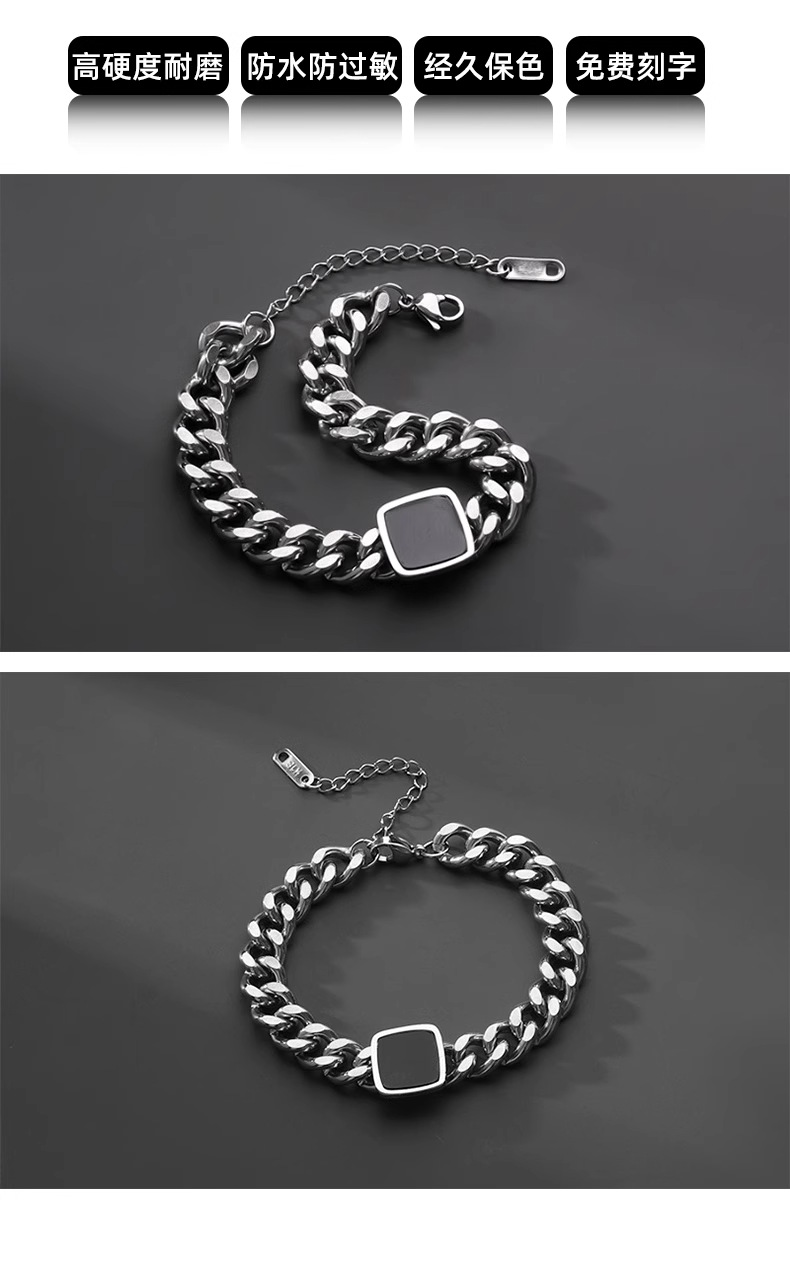 Square Cuban Bracelet Men's Titanium Steel Color-free Trendy All-match Retro Niche Jewelry Women's High-end Accessories Jewelry