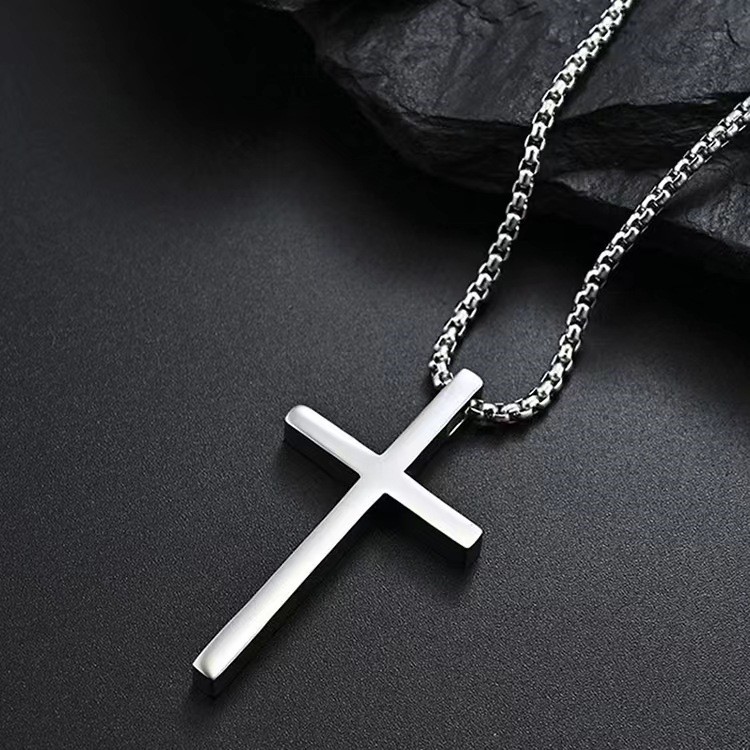 European and American cross-border new glossy cross men's necklace hip hop versatile long sweater chain pendant accessories