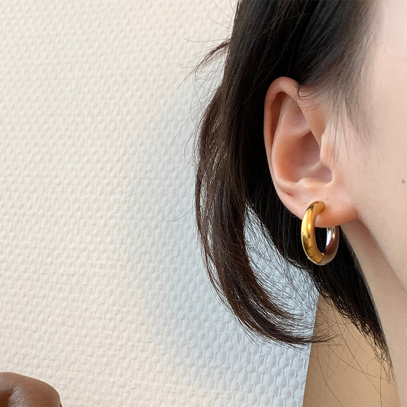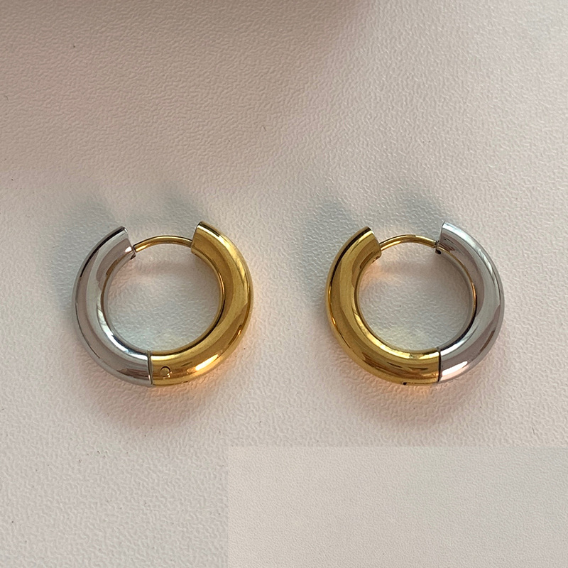 Ins Style Titanium Steel Earrings Simple and Fashionable Unisex Gold Earrings Round Hoop Gold Stainless Steel Earrings