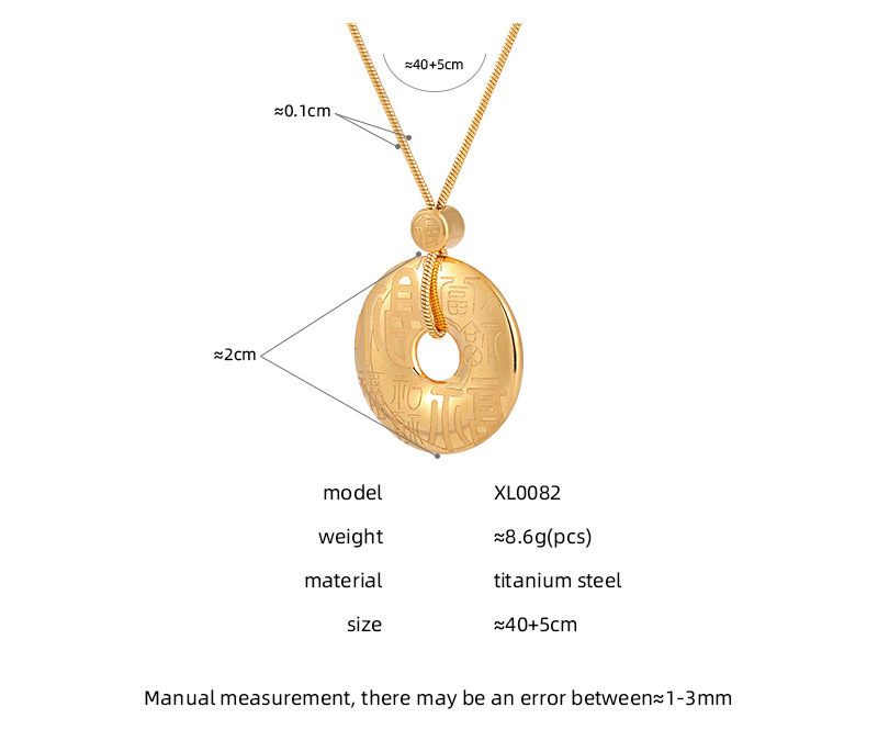 New Chinese style Chinese style niche design double-sided fu character Safety Buckle Titanium steel snake bone necklace fashion clavicle necklace