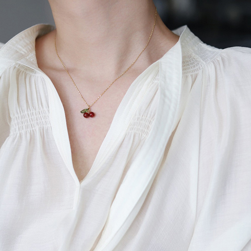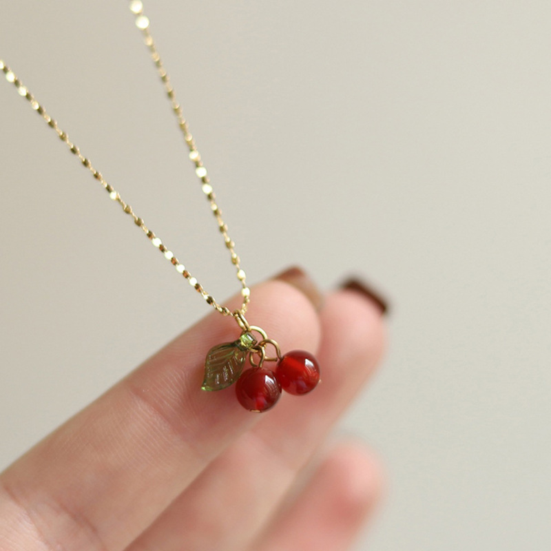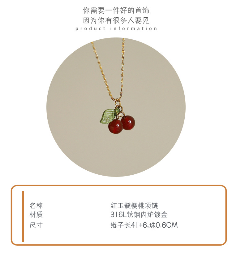 2023 New Red Cherry Red Chalcedony Titanium Steel Necklace Female Temperament Girl Sweet Student Cute Trendy Clavicle Chain