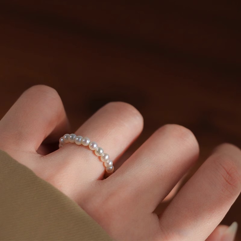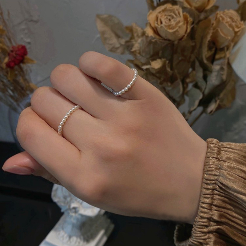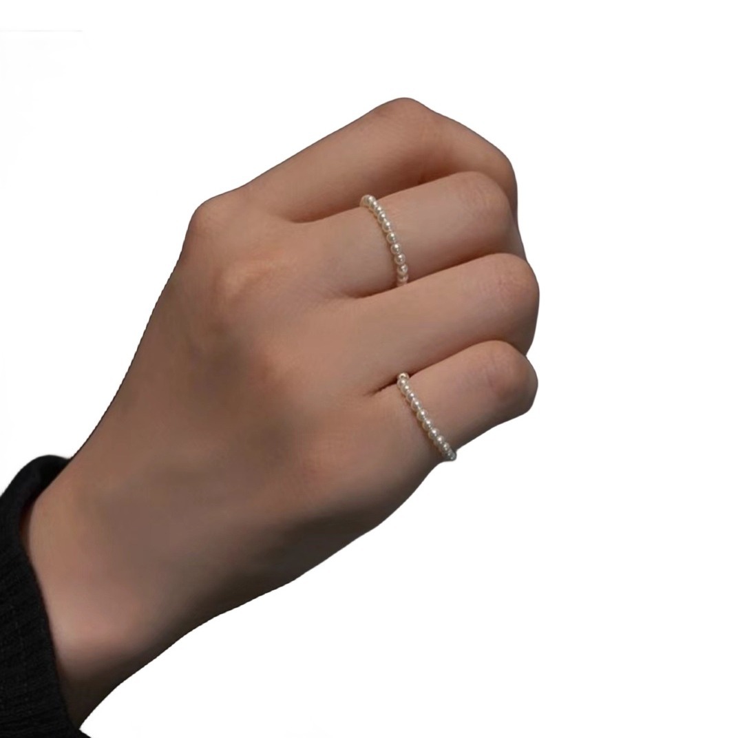 Korean style French Chanel style elastic rope pearl ring niche design ring fashion all-match bracelet accessories tail ring