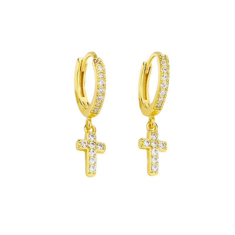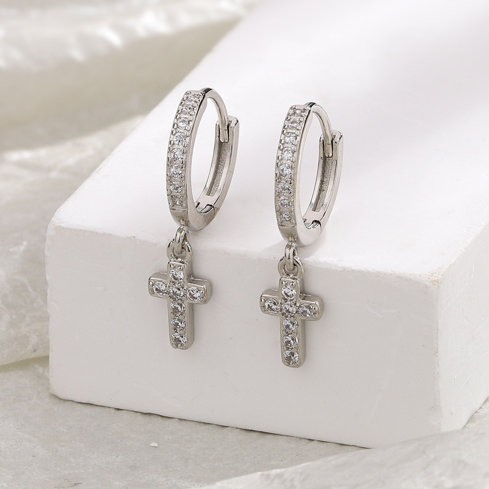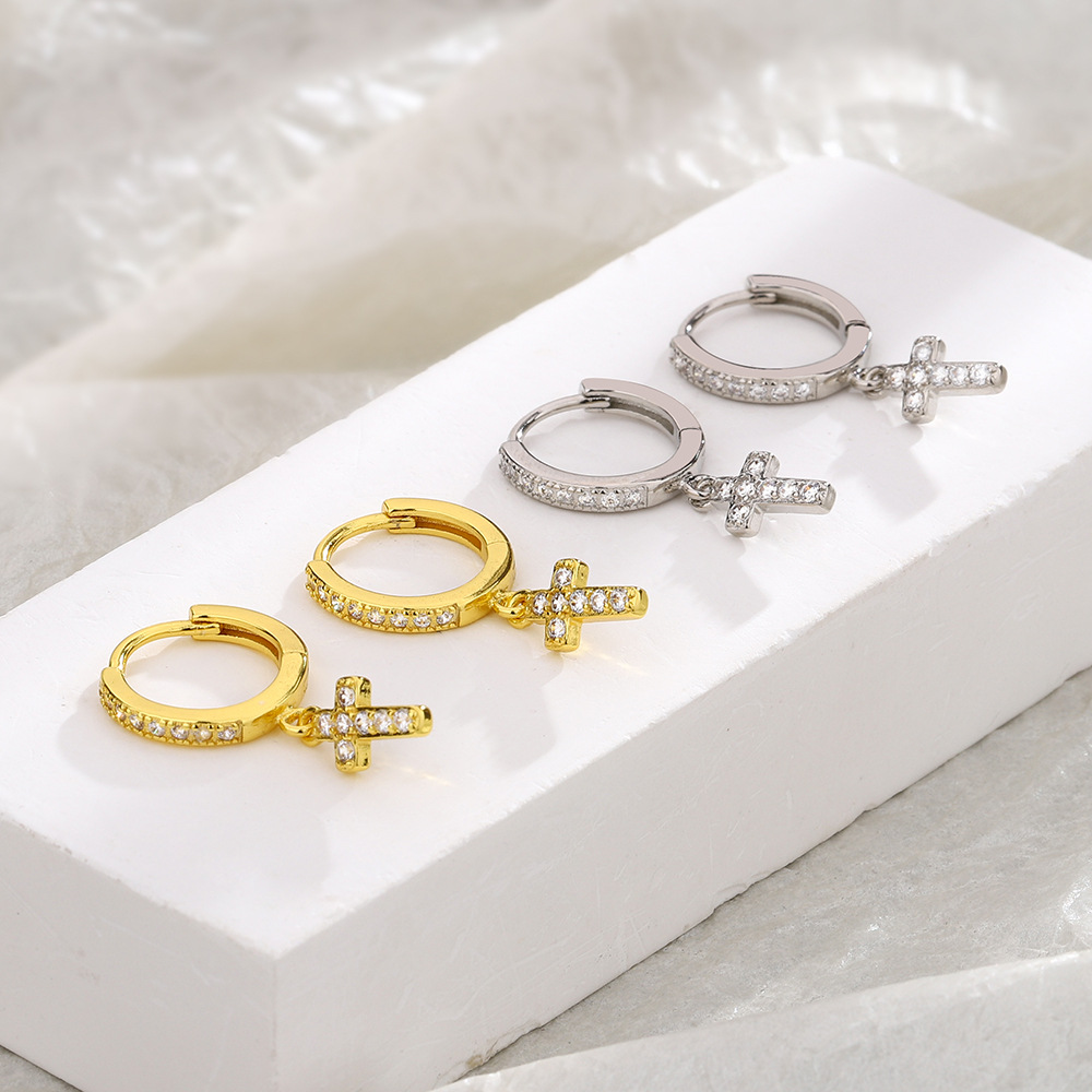 Flash Diamond Cross Ear Buckle American Style Puppies Handsome Neutral Ear Ring Hip-Hop Exquisite Flash Diamond Cross Ear Buckle Earrings for Women