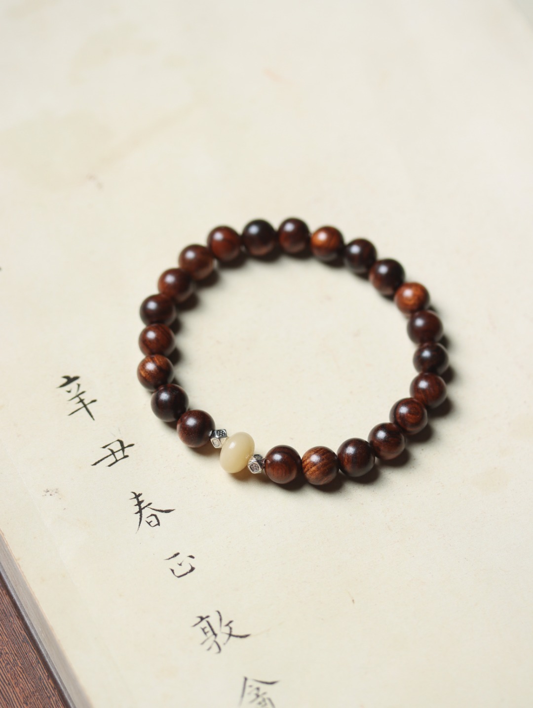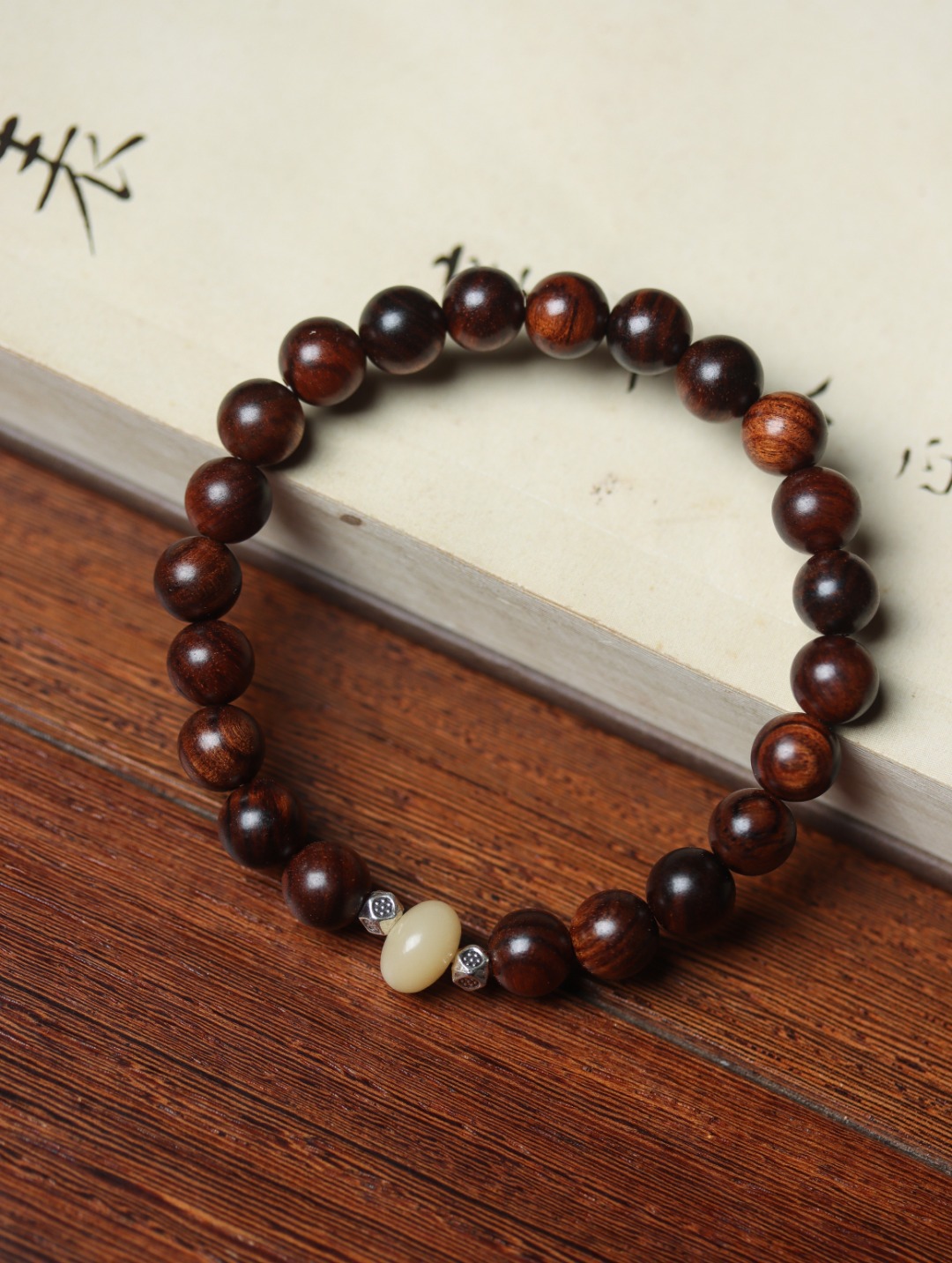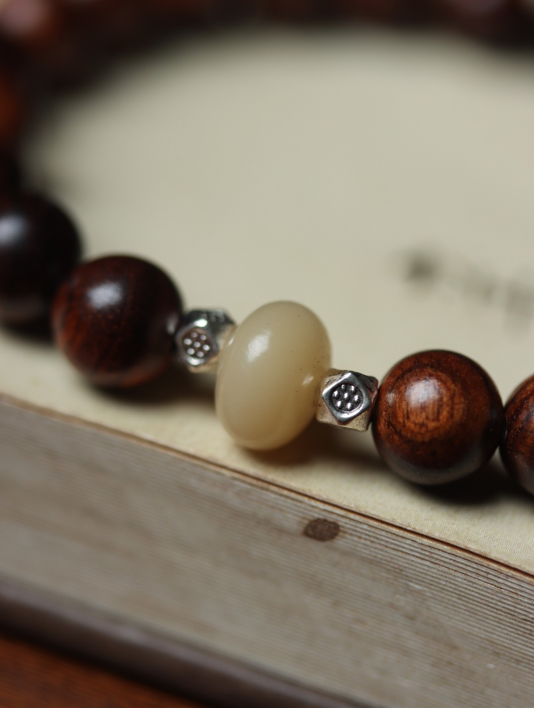 Black Rosewood 8mm bracelet White Jade Bodhi men's and women's DIY Mori ins style silver rosary beads High sense