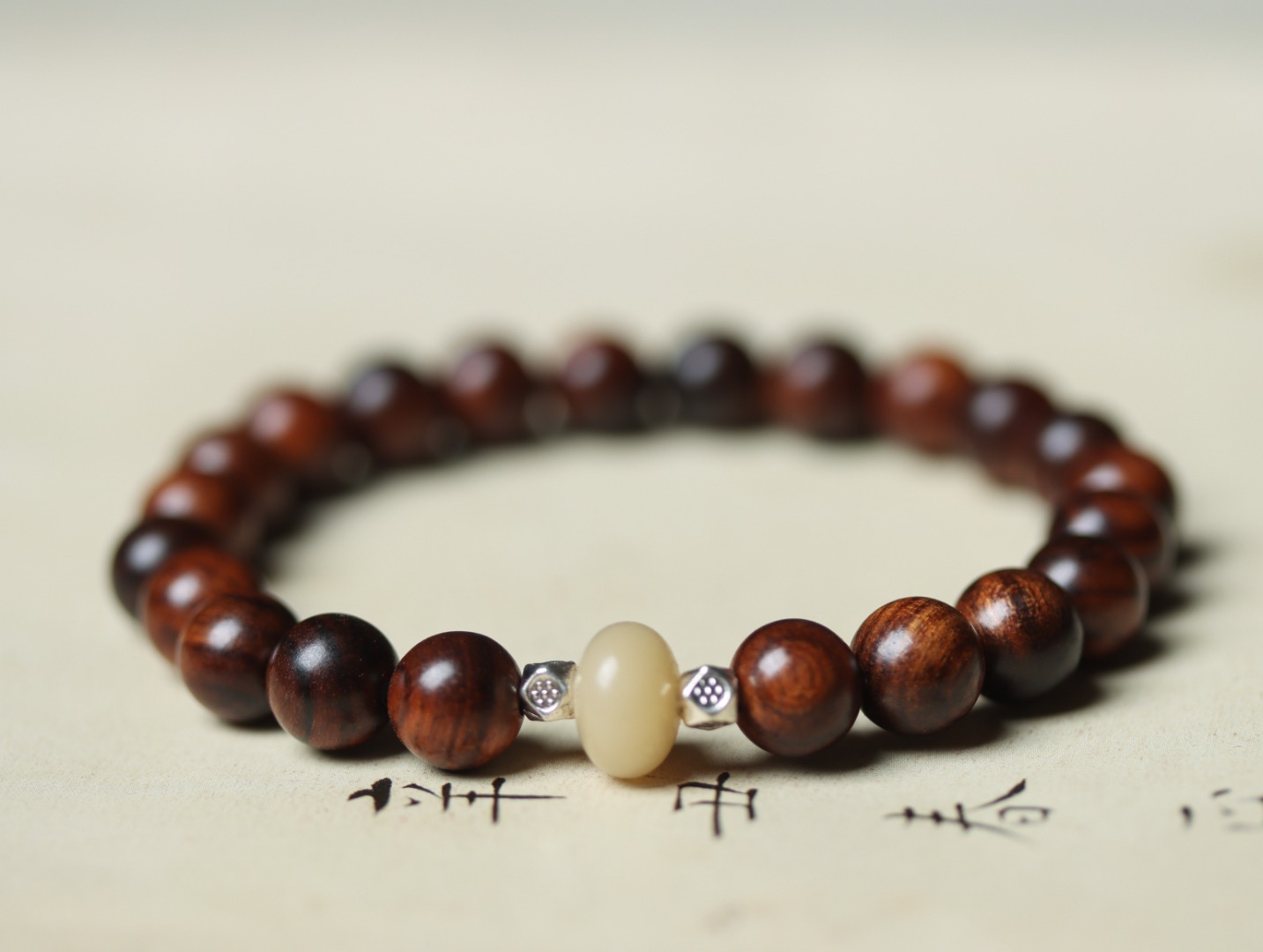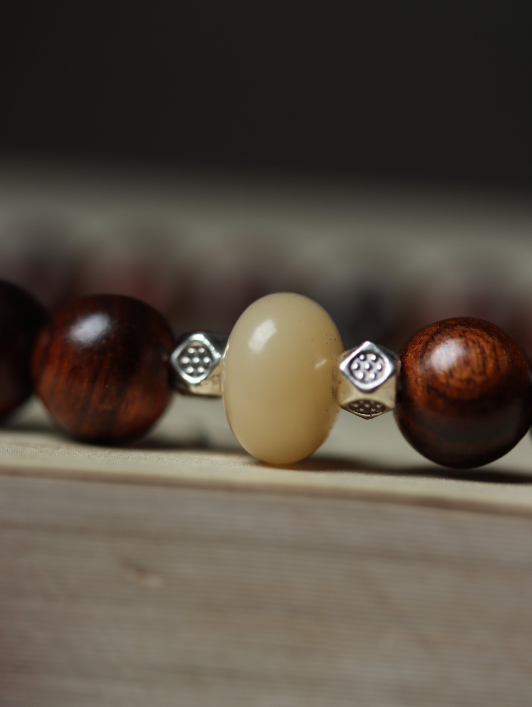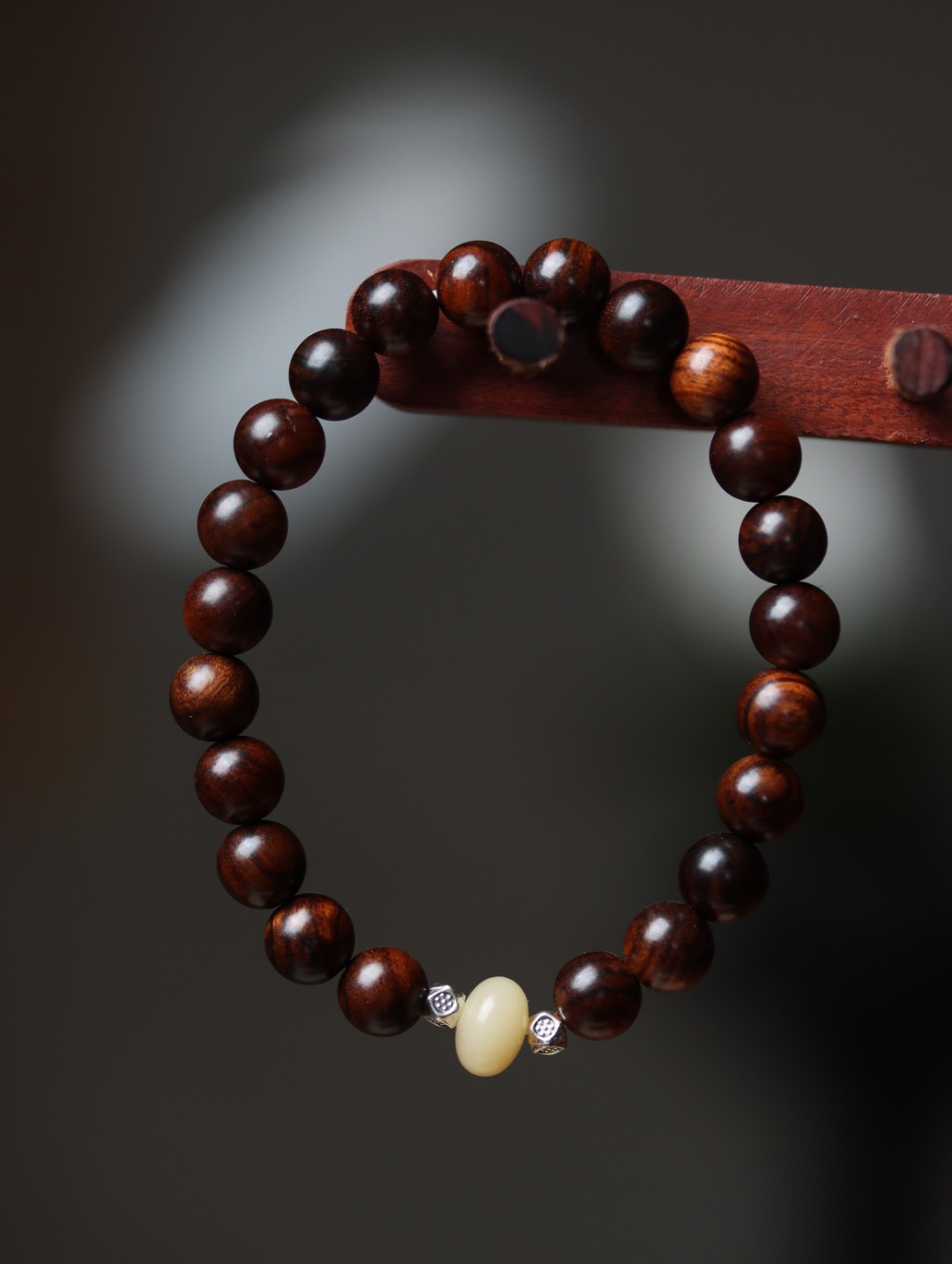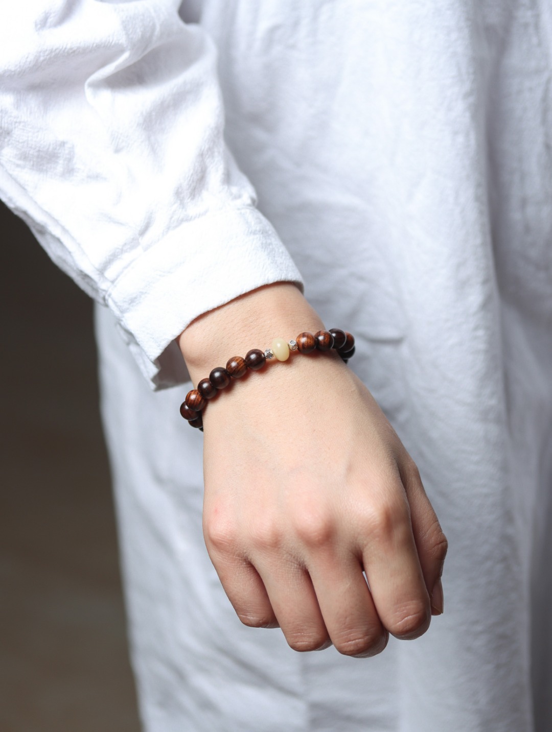 Black Rosewood 8mm bracelet White Jade Bodhi men's and women's DIY Mori ins style silver rosary beads High sense