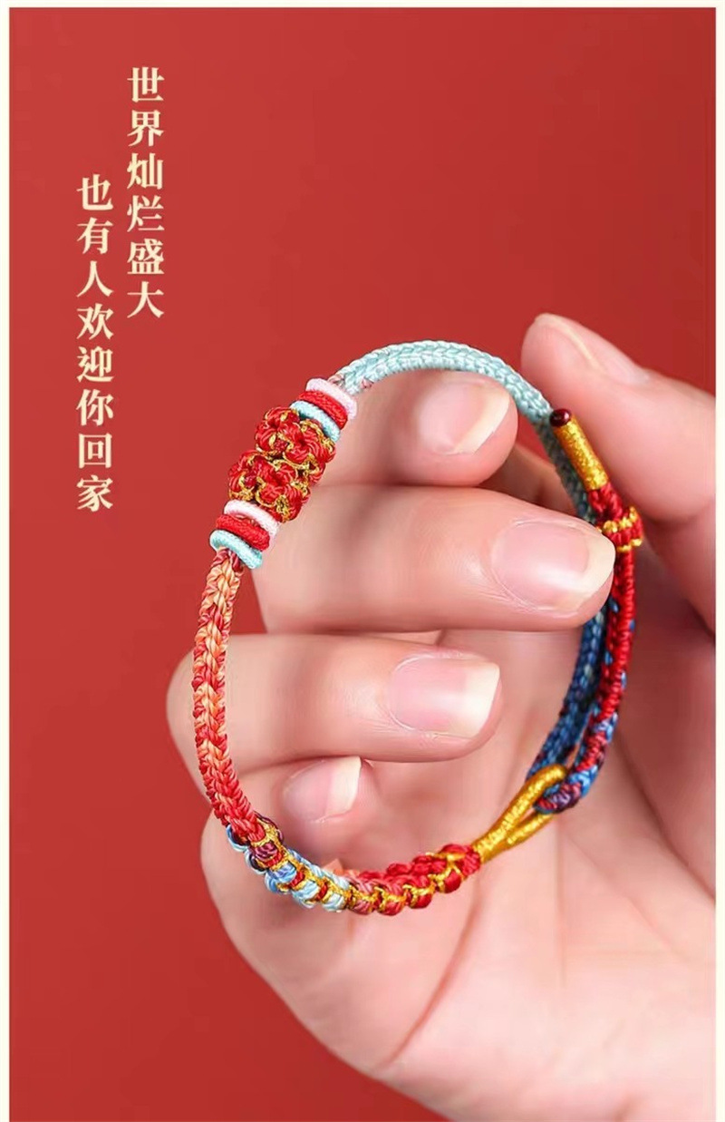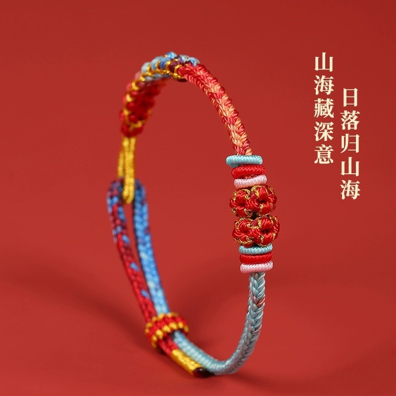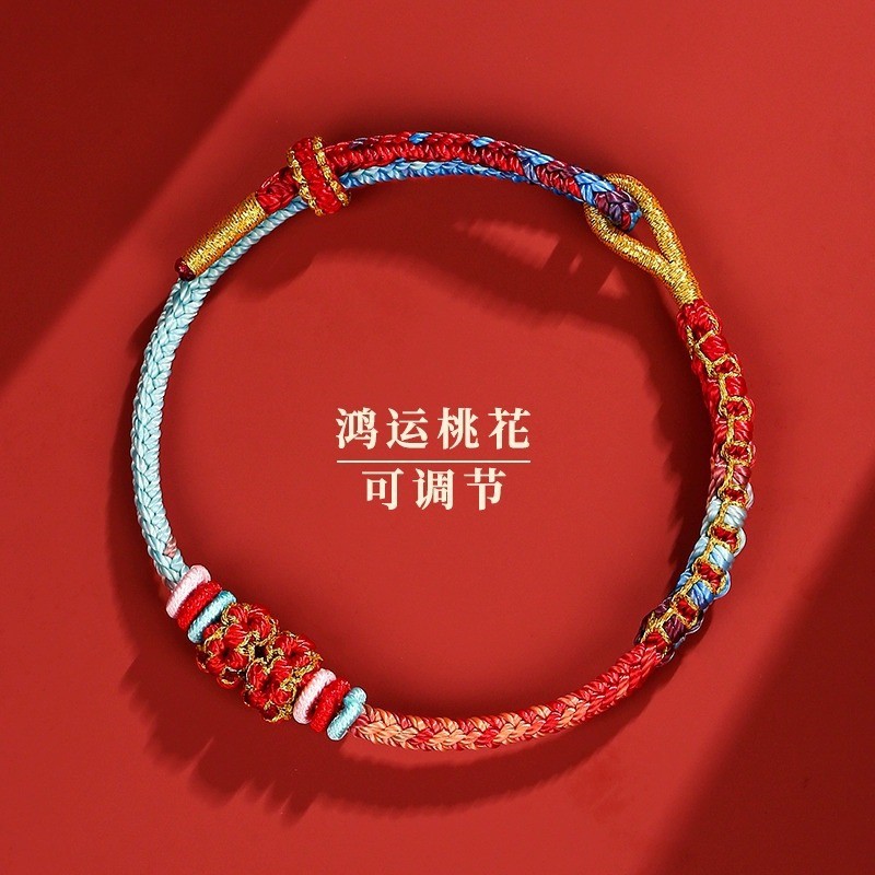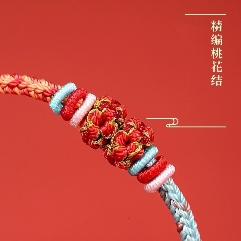 Gradient peach blossom bracelet woven bracelet female hand-woven Peach Blossom Knot bracelet birth year jewelry couple jewelry
