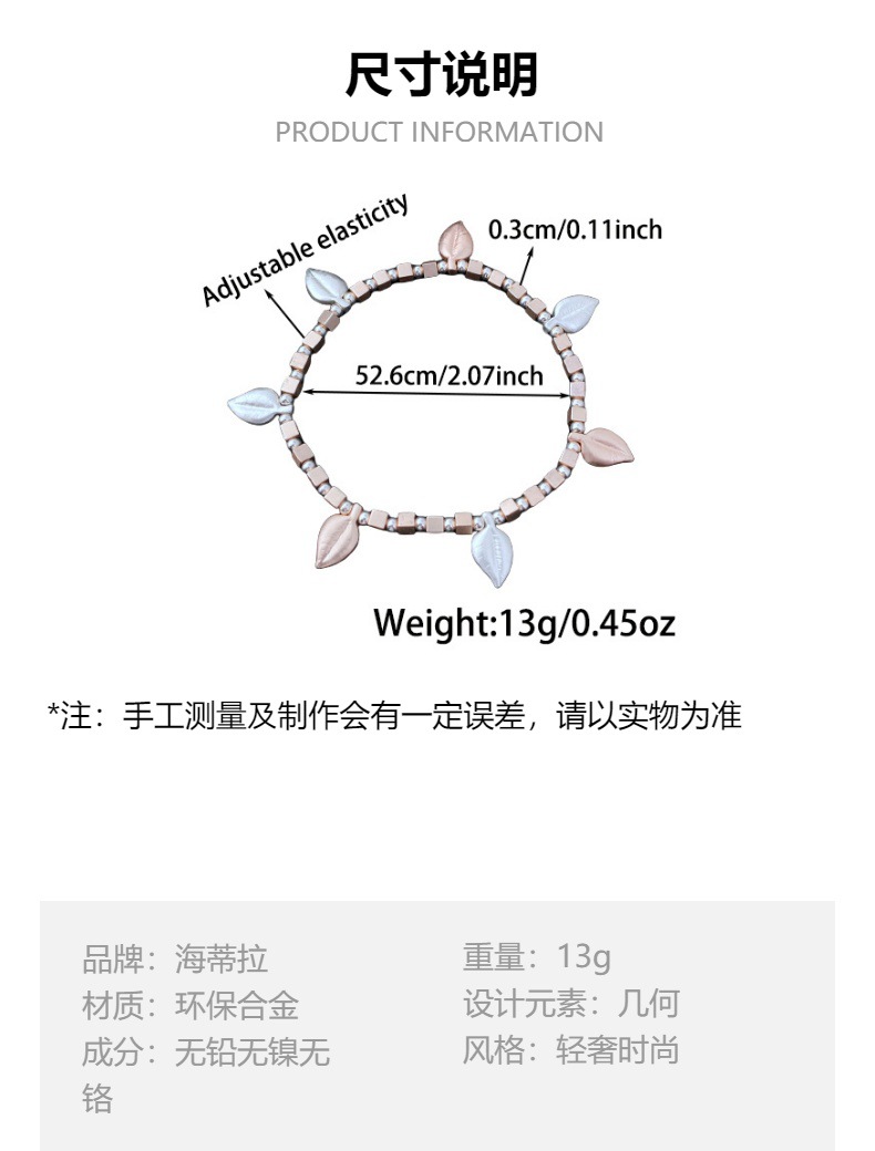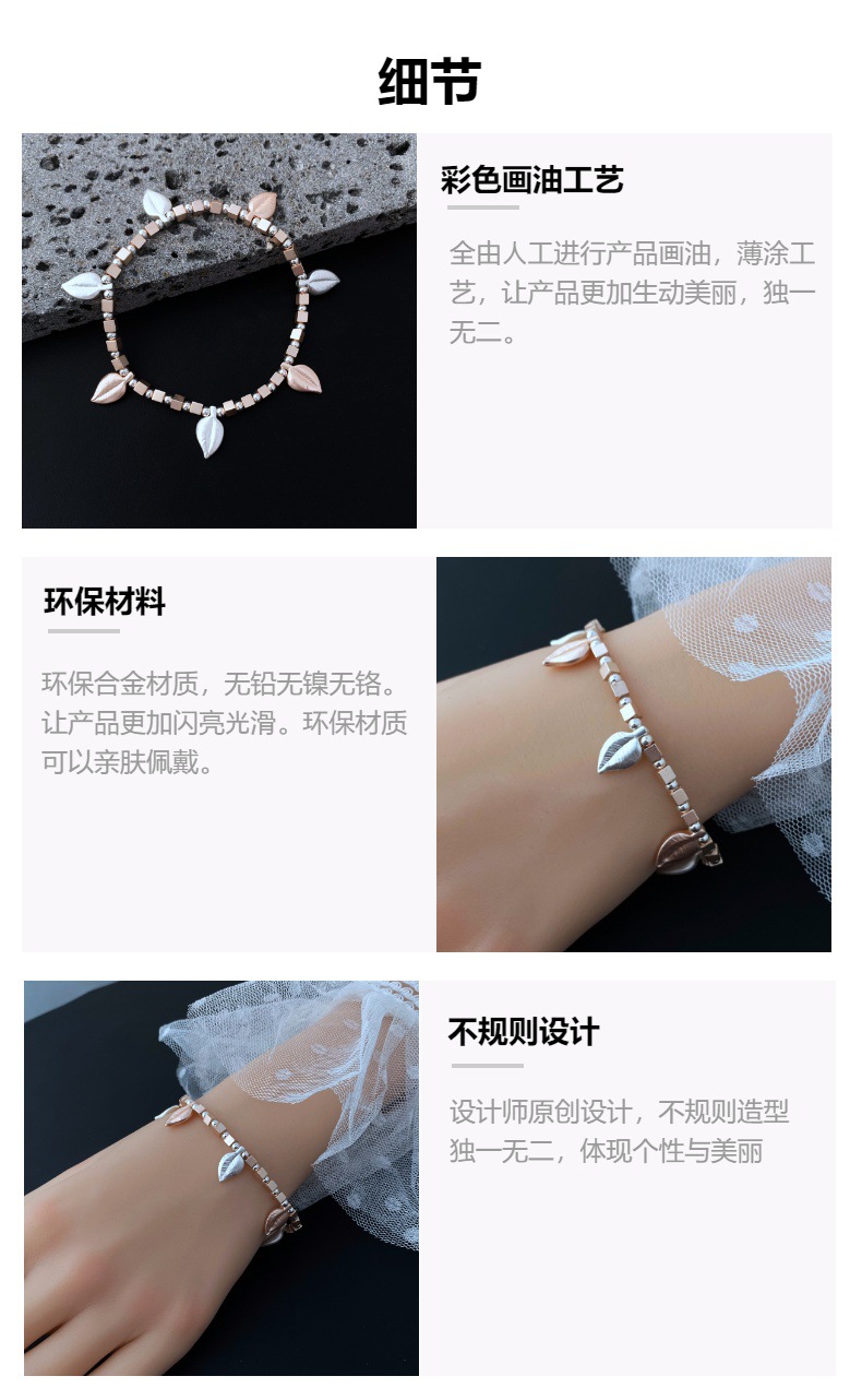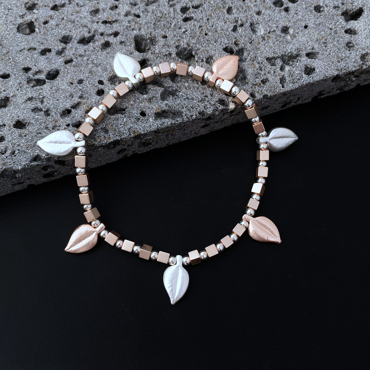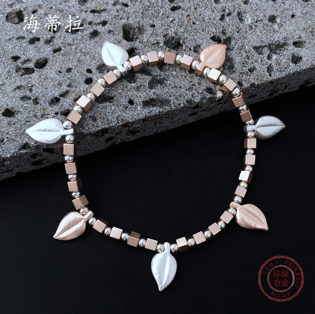 Cross-border new two-color leaf square grain beaded alloy bracelet creative leaf shape women's small clear bracelet