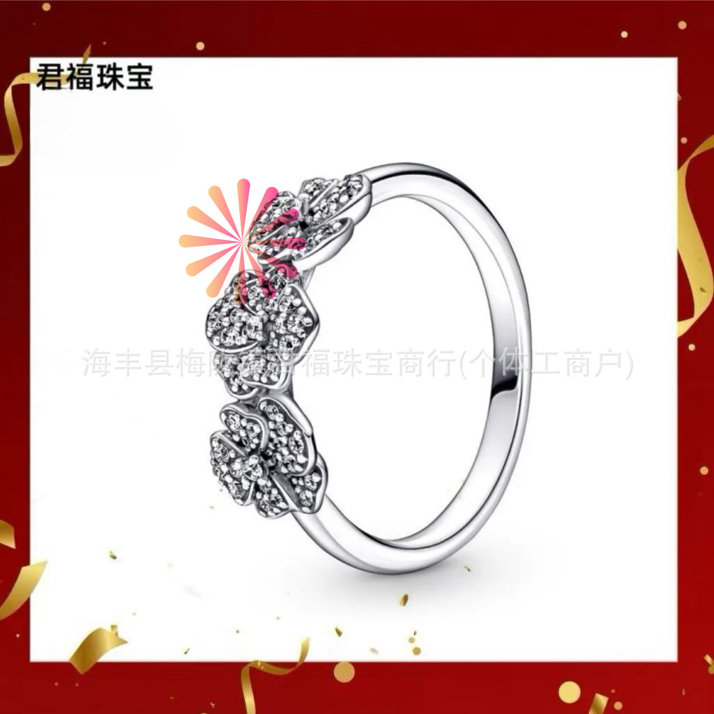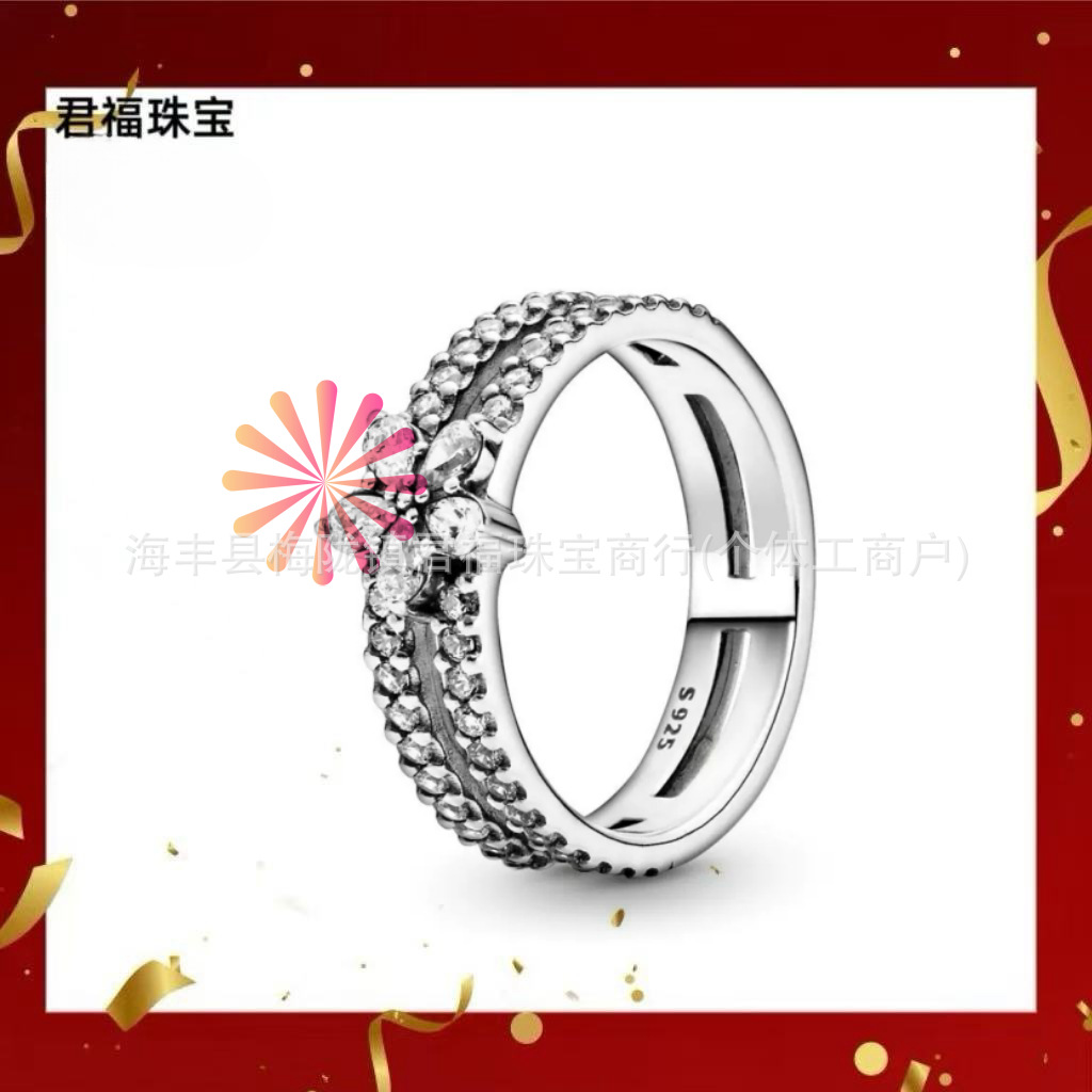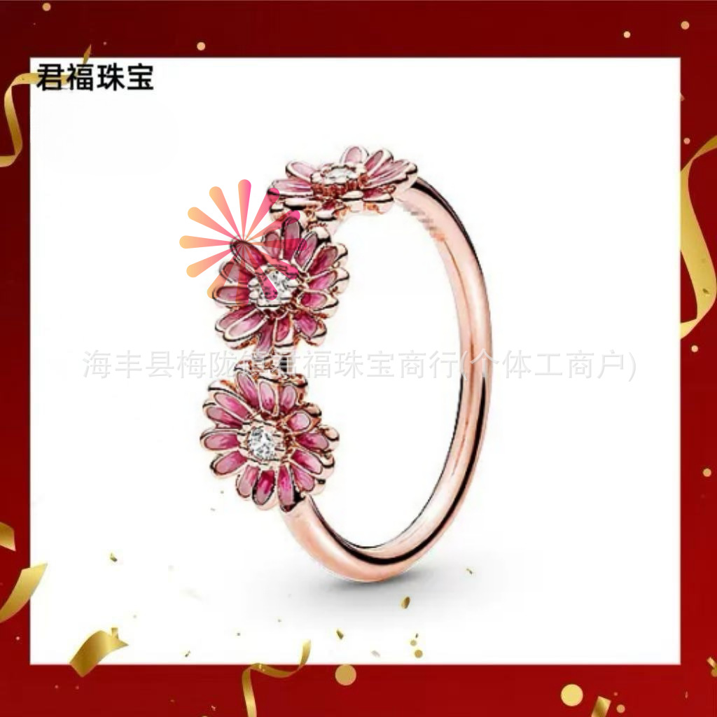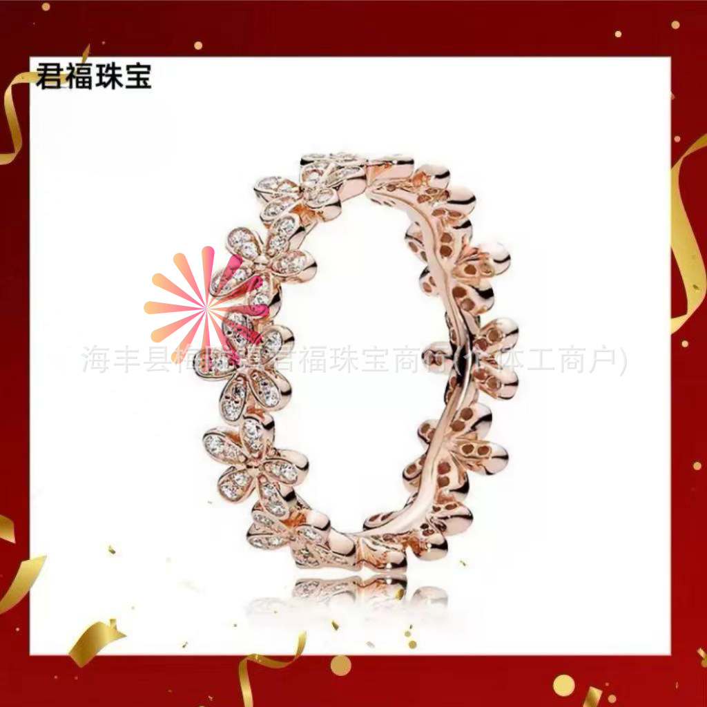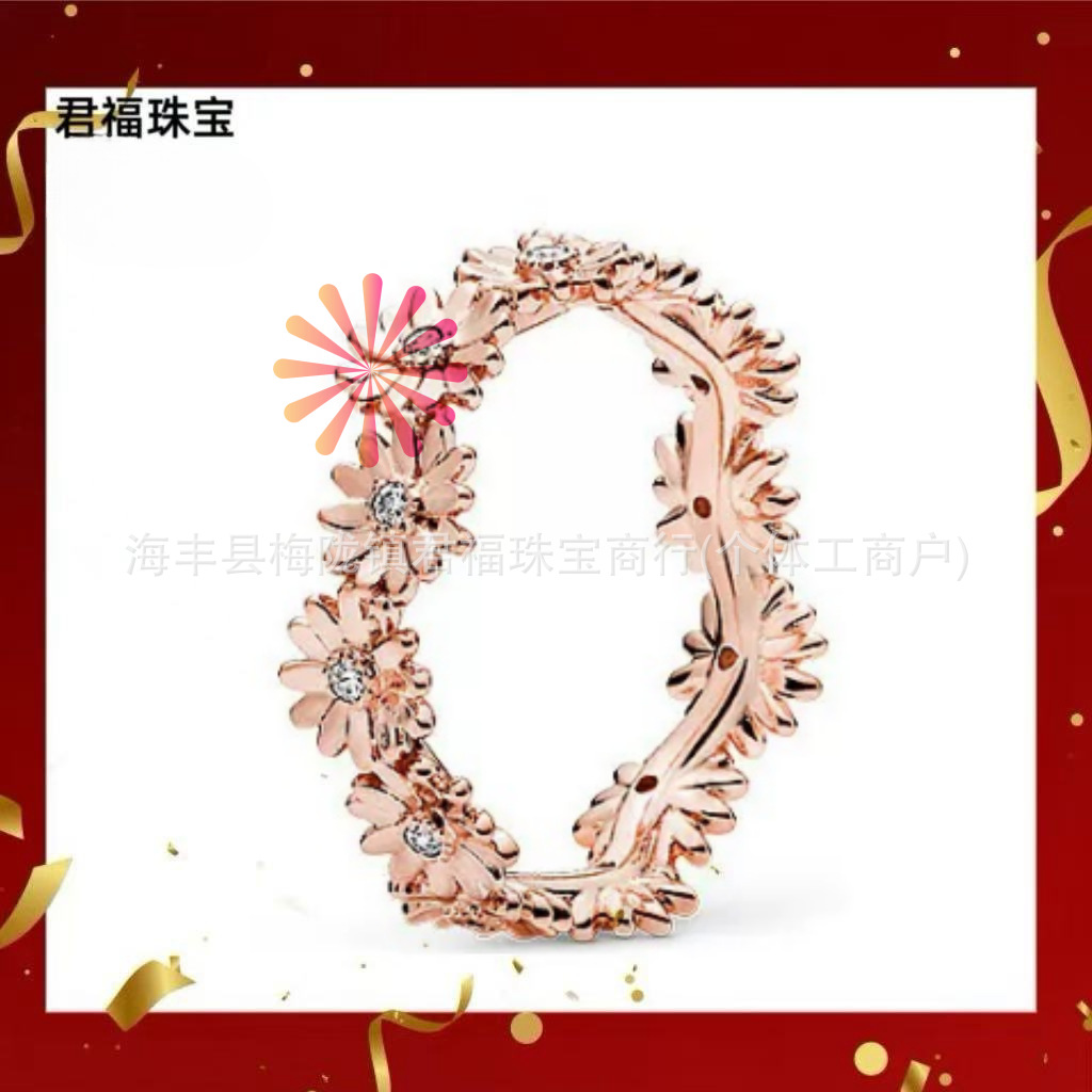 Pan's White Copper Shiny Daisy Corolla Ring, Peach Blossom Ring Factory Direct Sale, Fashionable and Fashionable