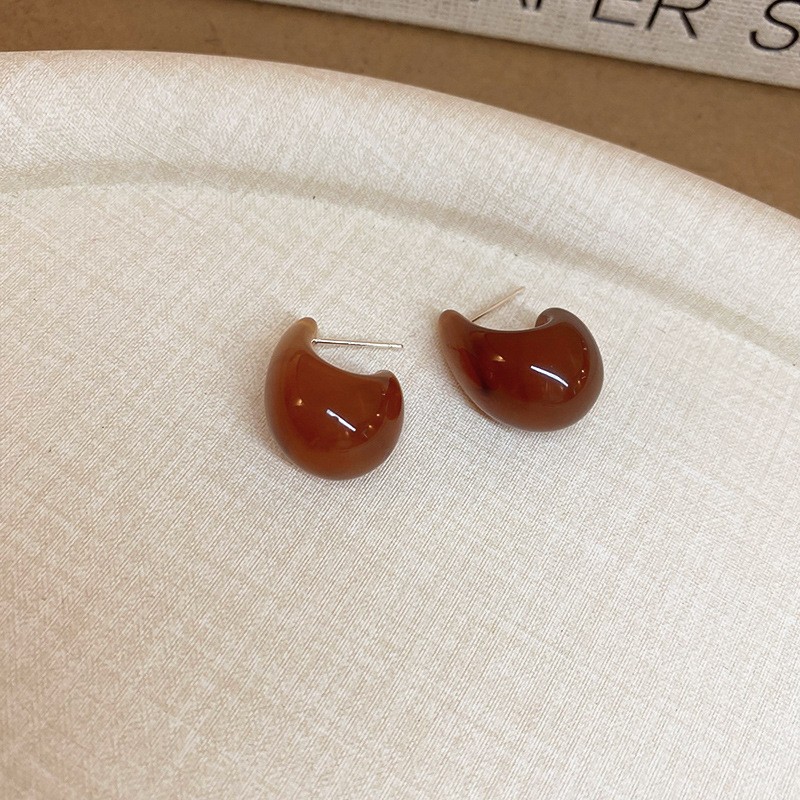 Color: 132#Ear buckle-brown-round