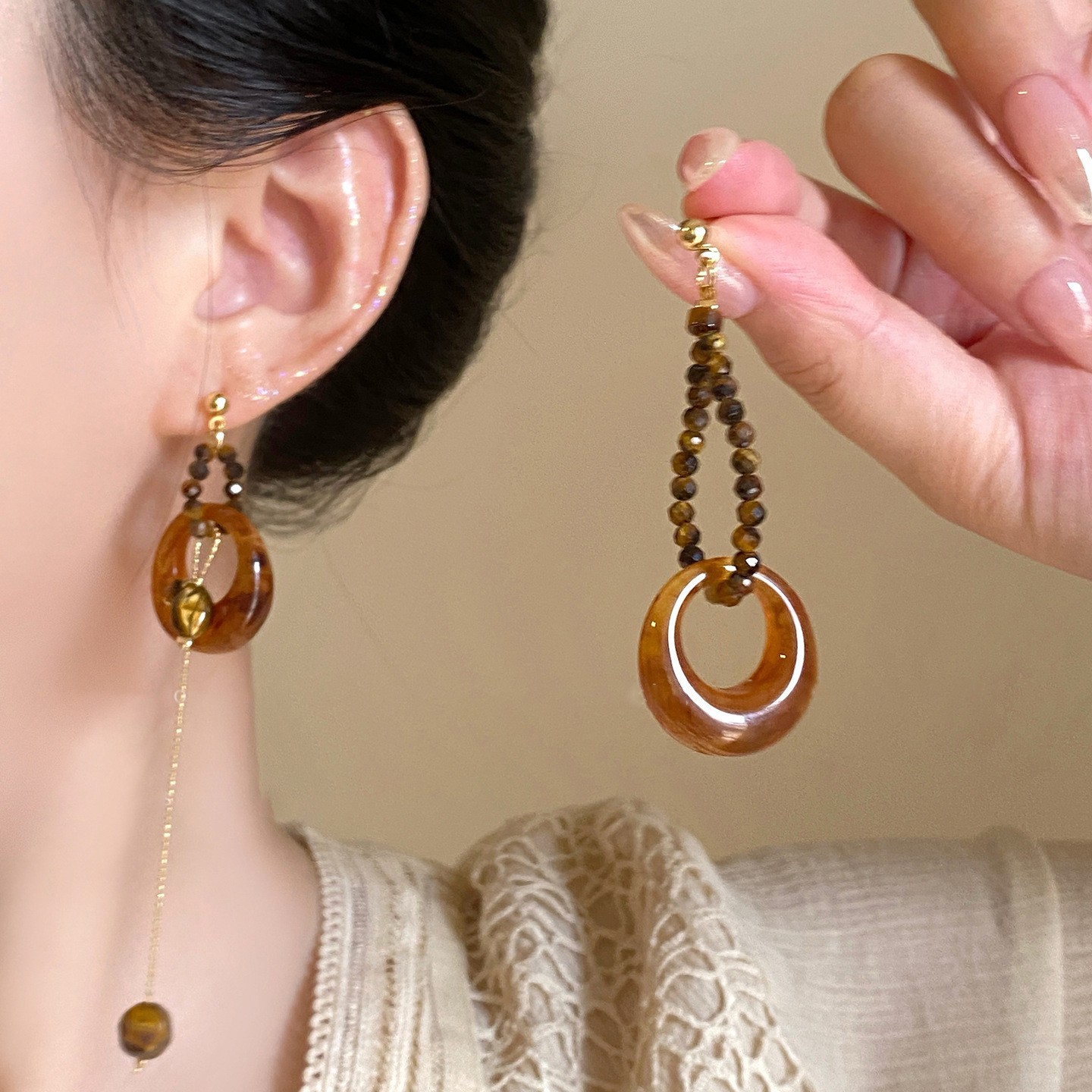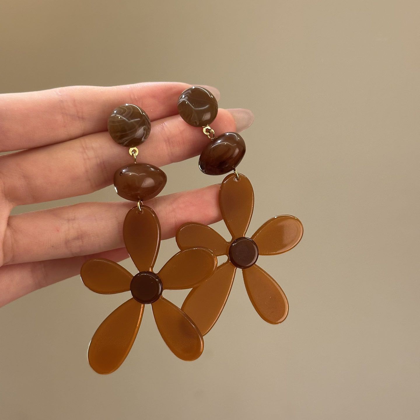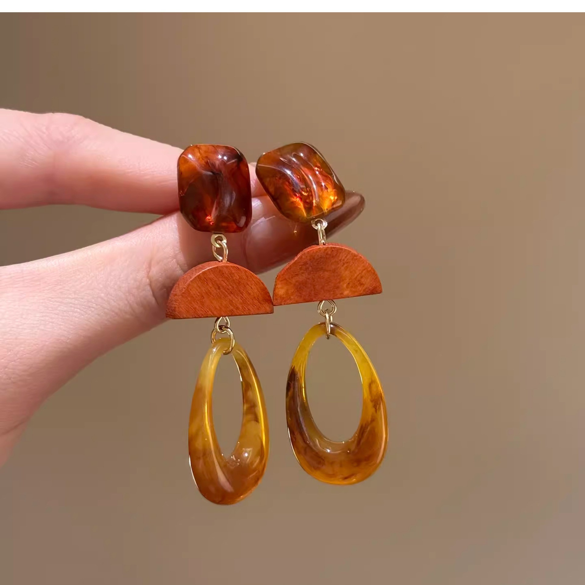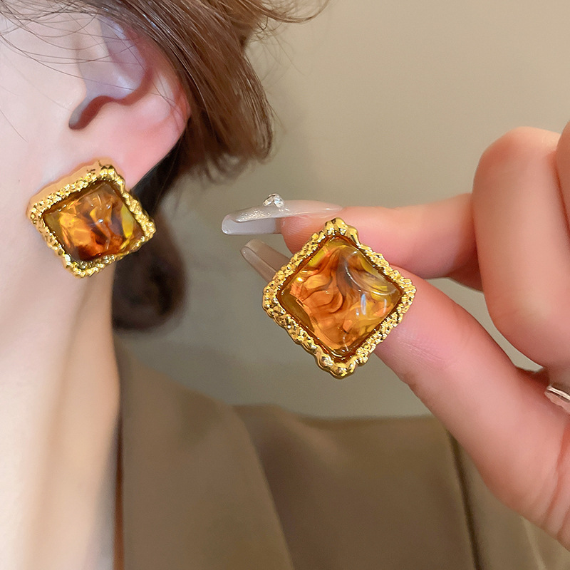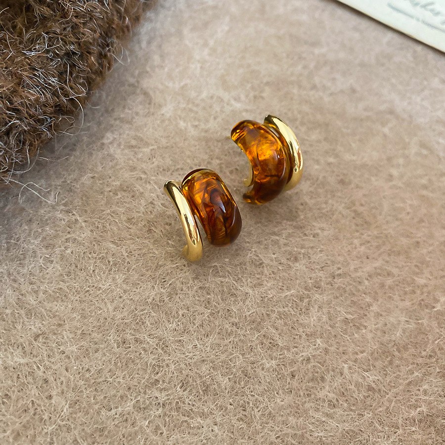 Color: 100#Earrings-gold-brown