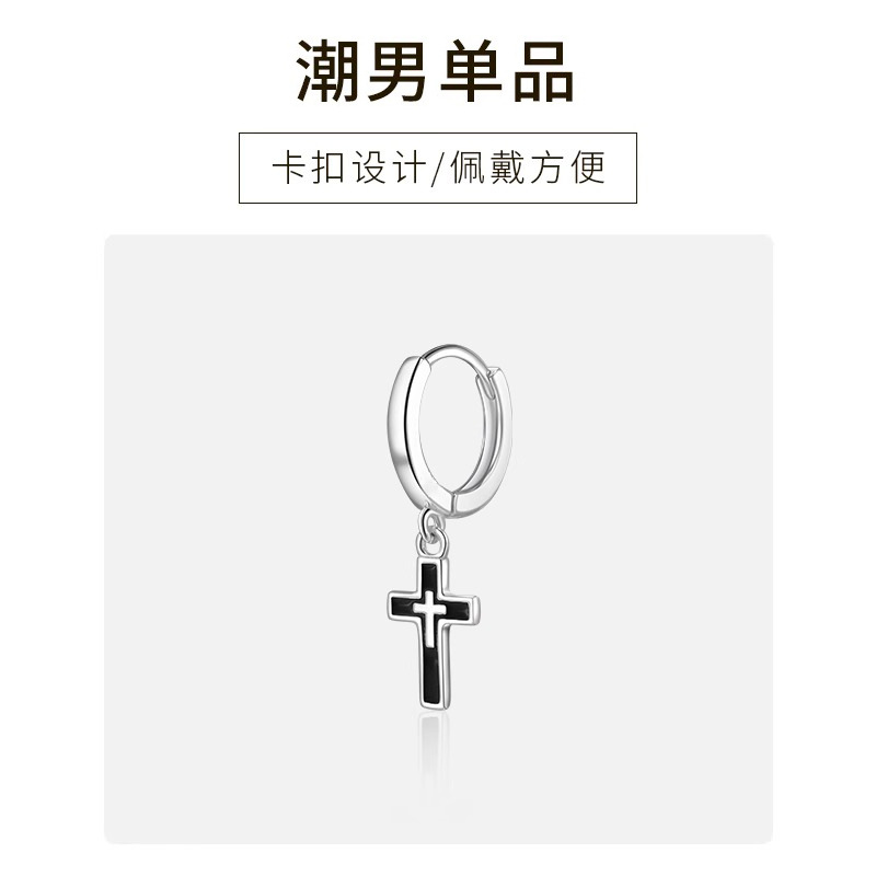 Cross Earrings Single Cold Style All-match Men's Ear Buckle Fashion Niche Personality Design Advanced Sense Ear Jewelry