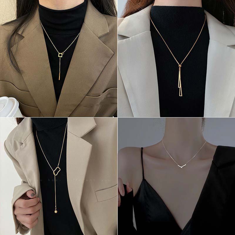 Color: Silver pull-out triangle necklace [full body titanium steel]