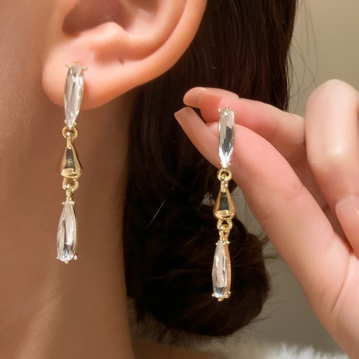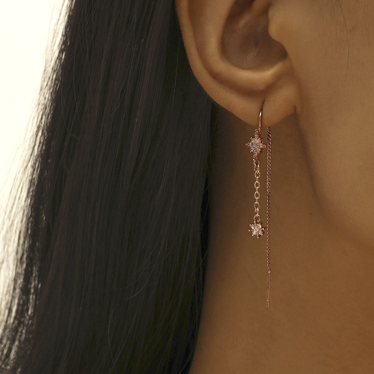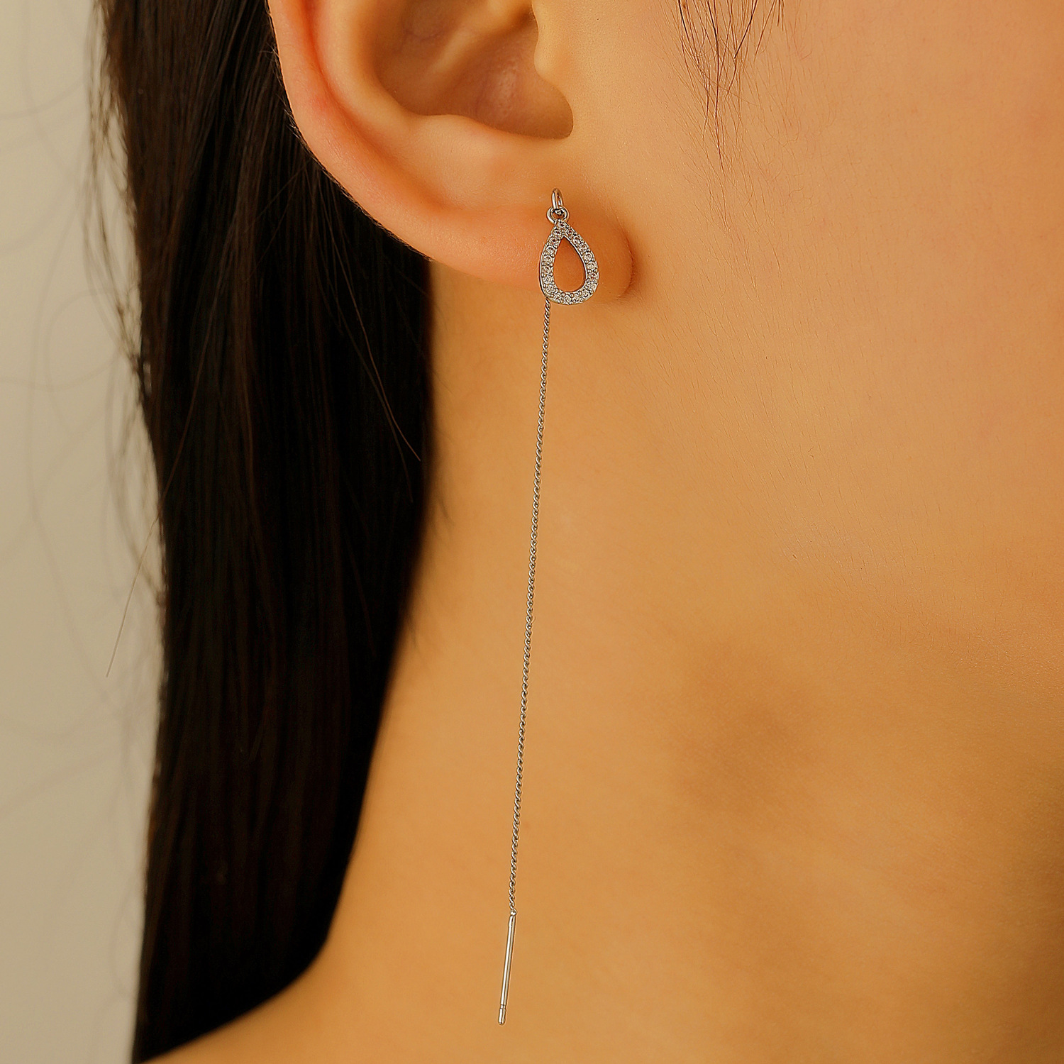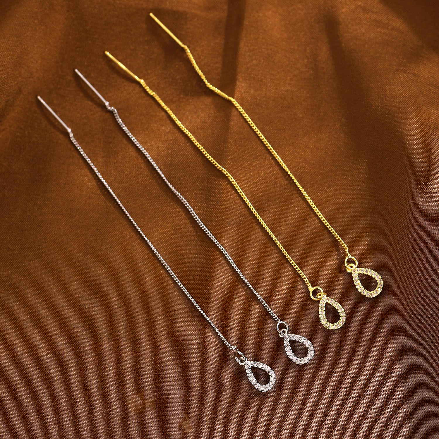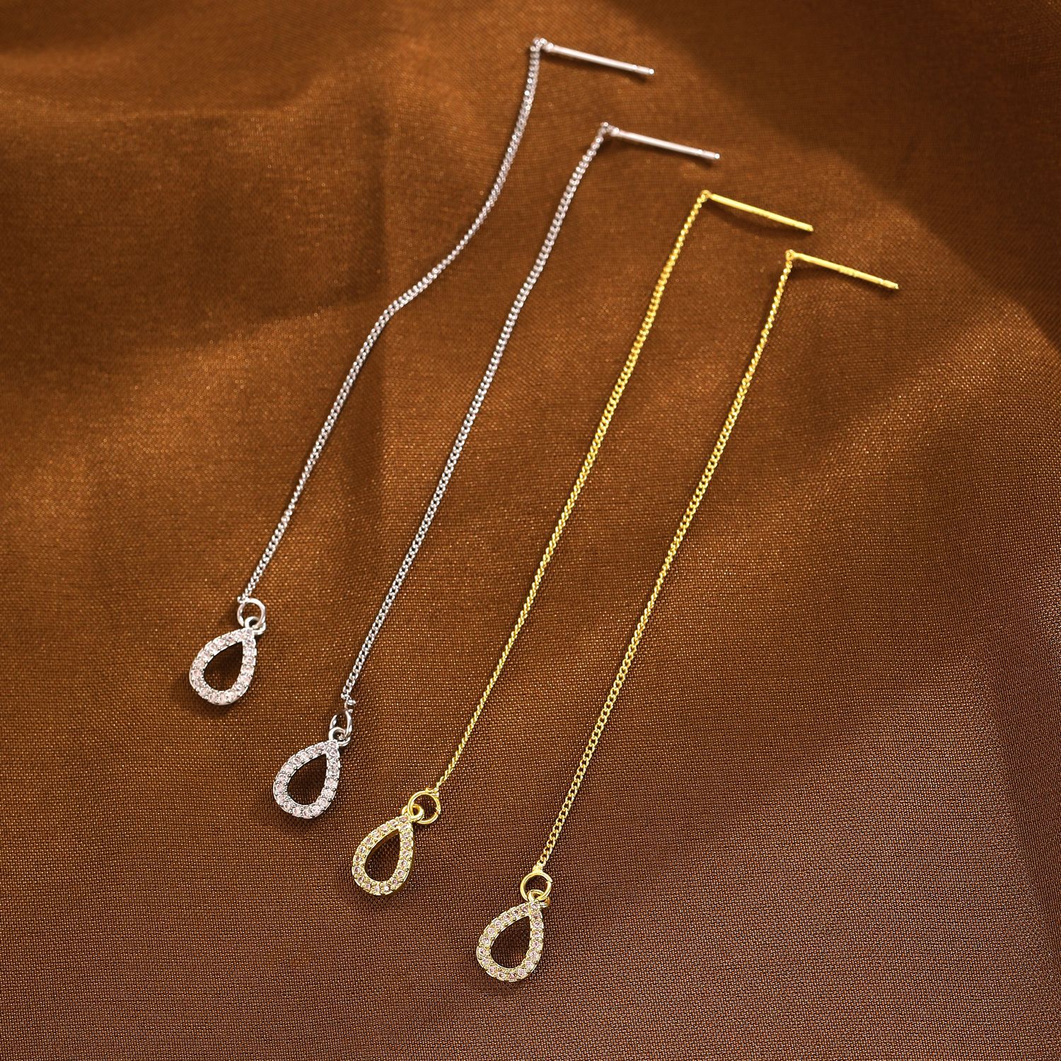 European and American Cross-Border New Long Tassel Earrings for Women, High-End Light Luxury Niche Earrings, Ear Wire Water Drop Earrings Wholesale