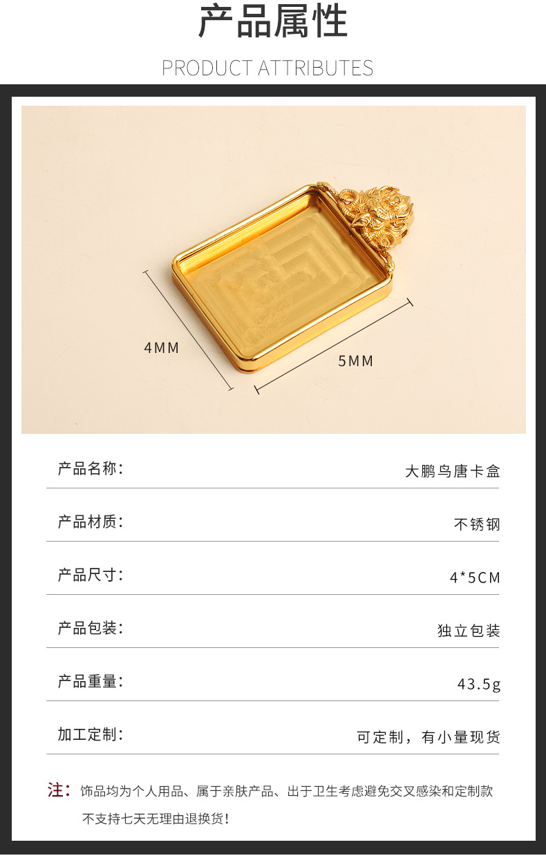 Big Eagle Tangka Box Pendant 4*5cm Vajra Pestle Ga'U Box Buddha Amulet Pendant All-Gold Fashion Necklace