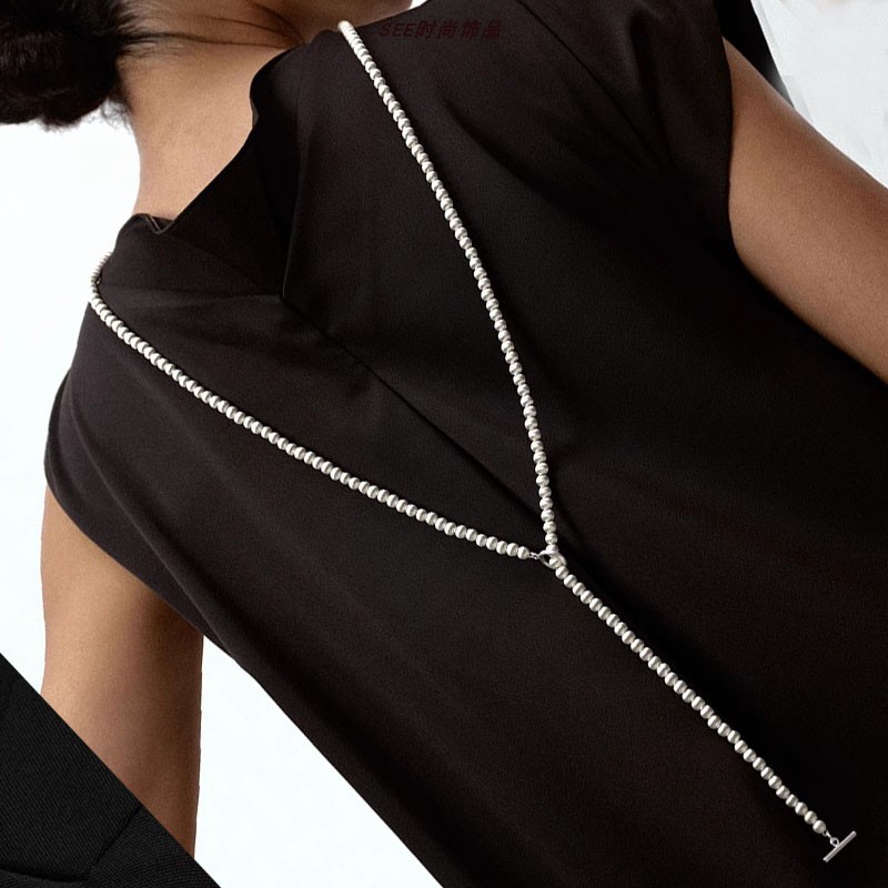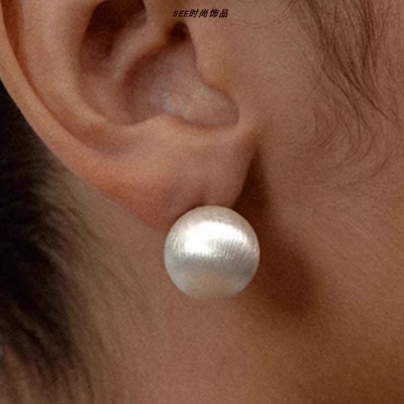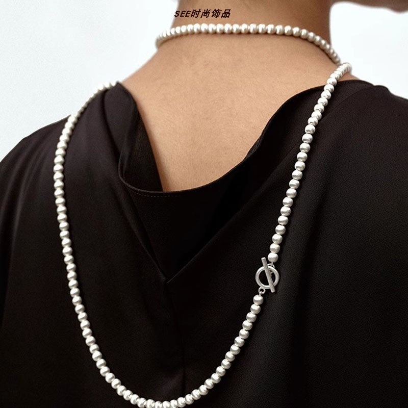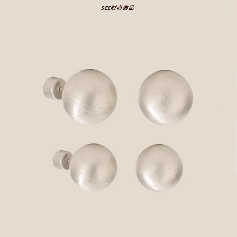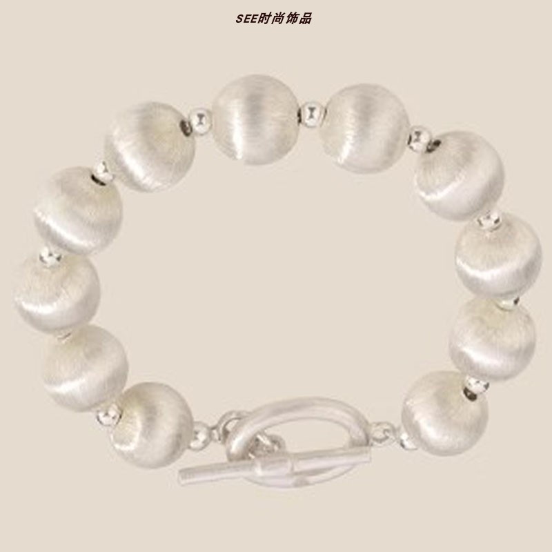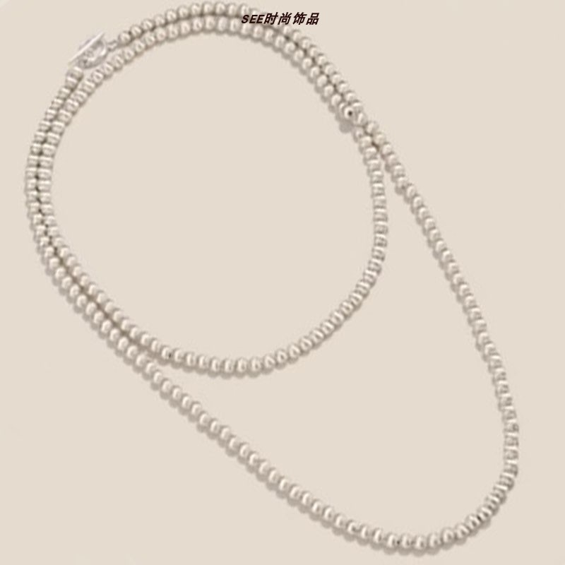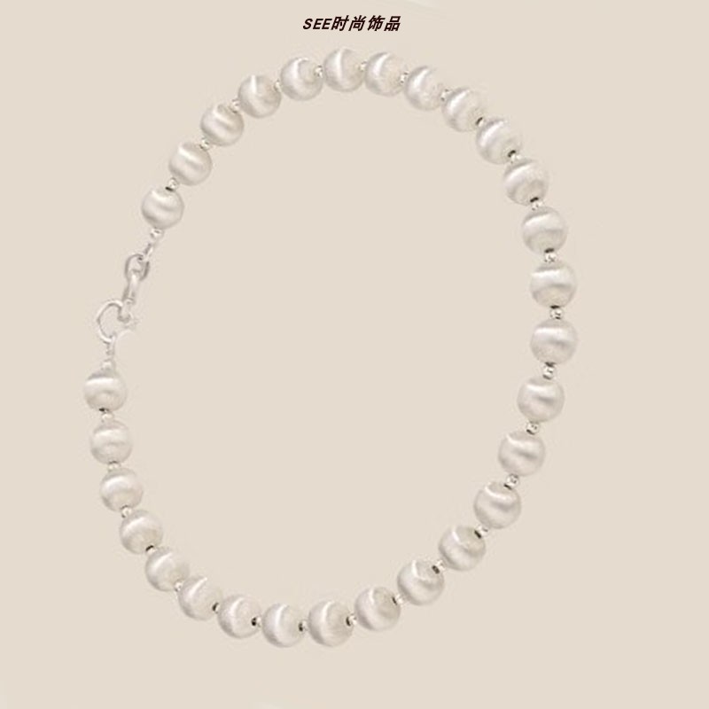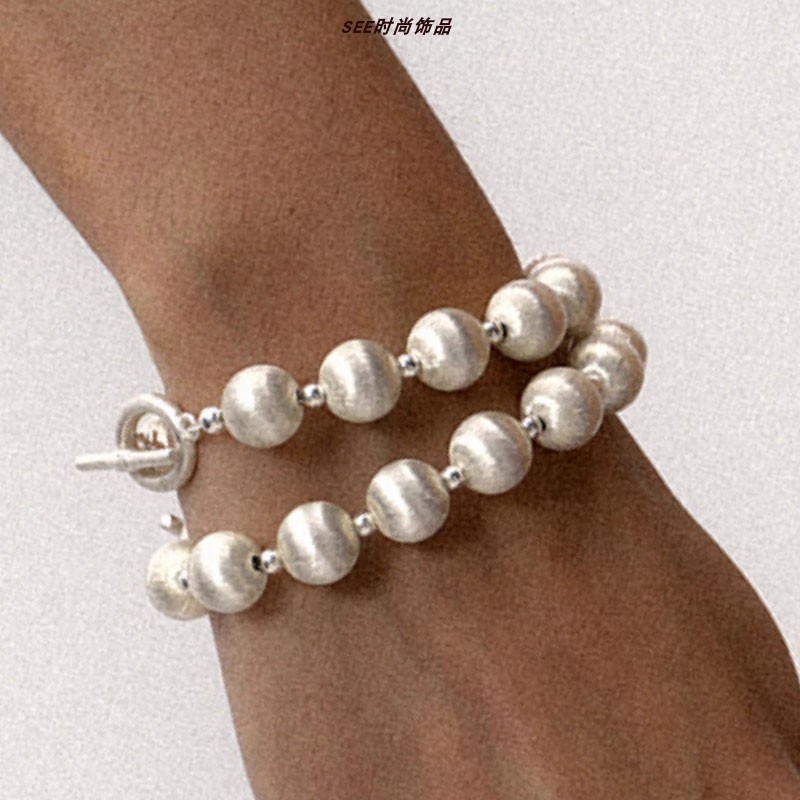 Heavy industry brushed necklace light luxury niche autumn and winter craftsman round ball beaded stacked chain stud earrings bracelet long chain personalized decoration