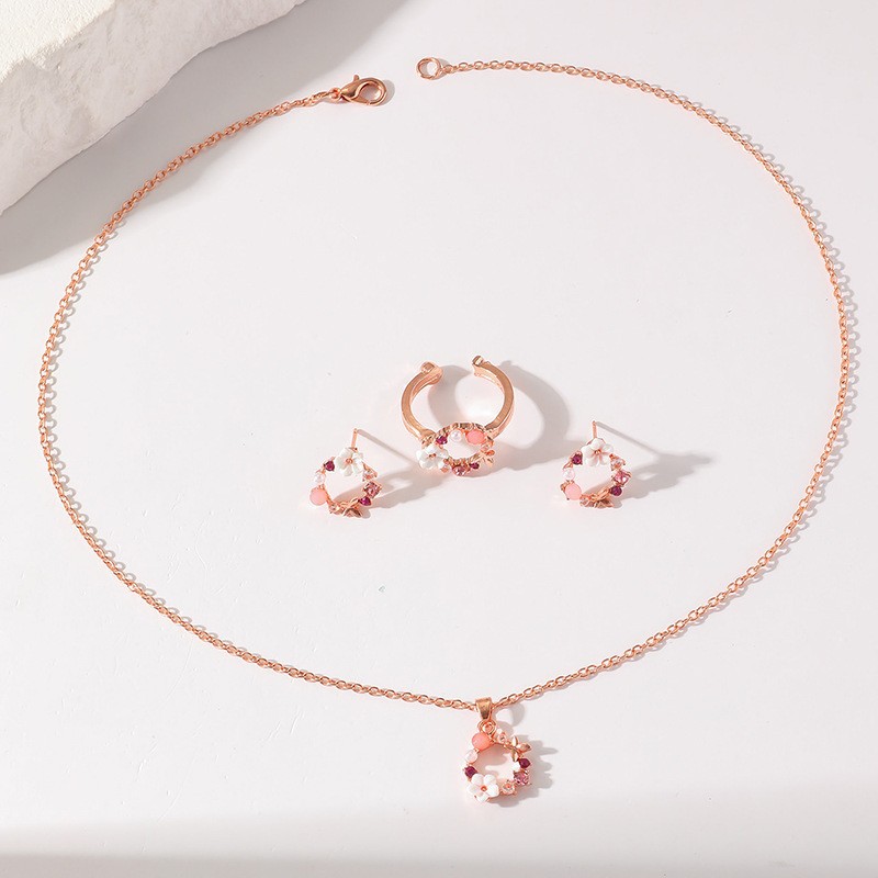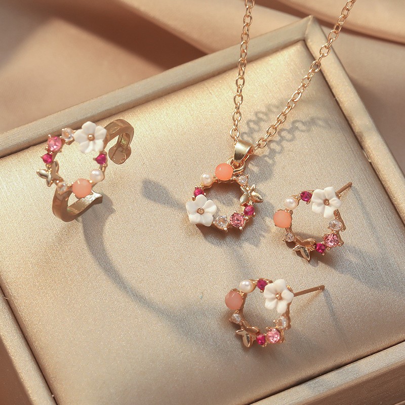 4 Pieces of Cross-Border High-End Accessible Luxury Alloy Flowers Niche Earrings Ring Necklace Set Women's Fashion Set Prom