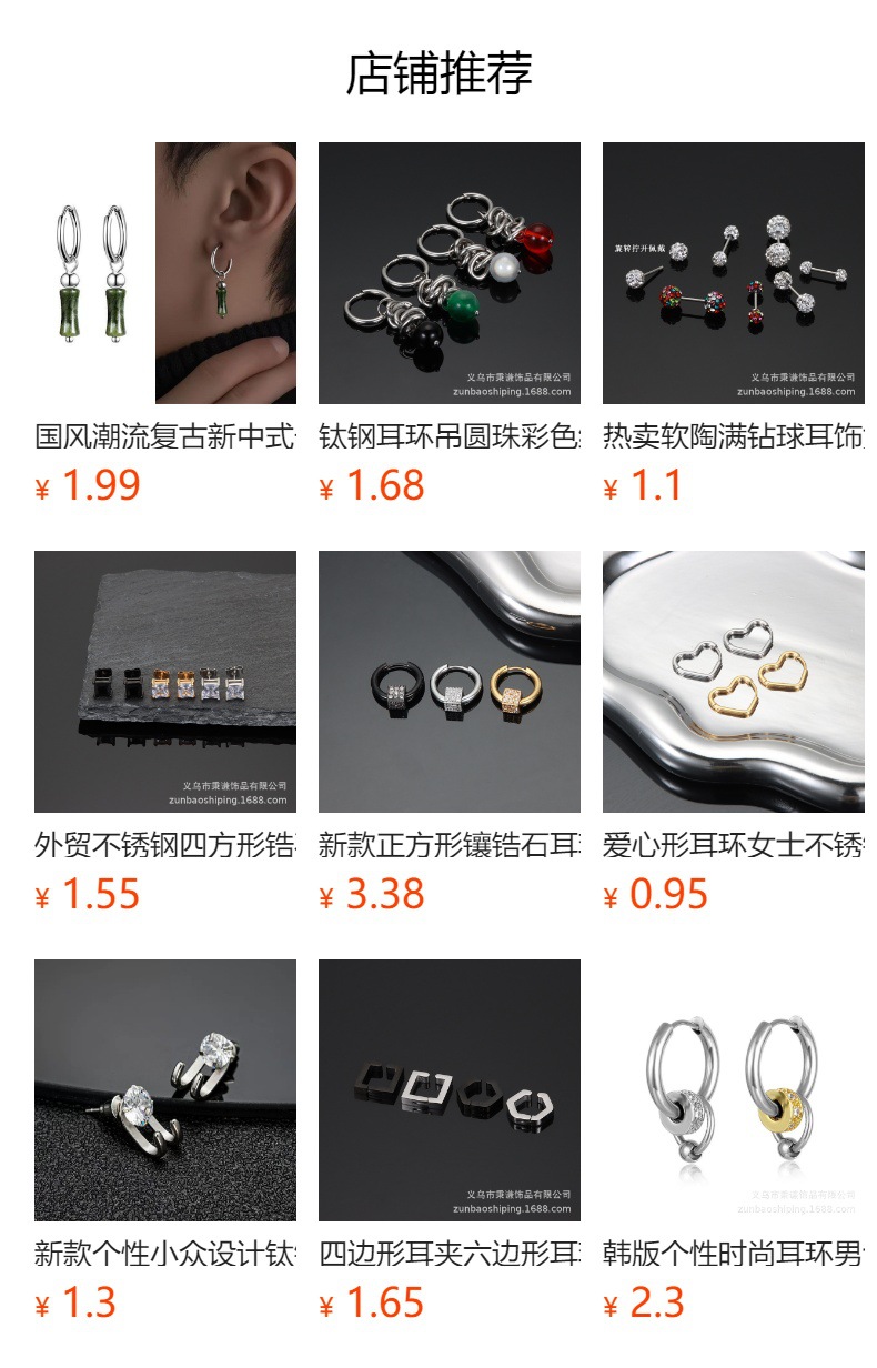 尺寸:耳环2.0毫米*12毫米内径