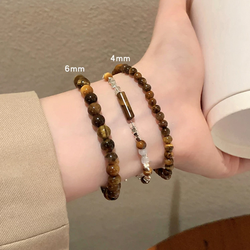 Broken Silver Tiger Eye Stone Spliced Beaded Bracelet Women's Autumn and Winter Niche Retro Hand Jewelry Student Couple Personalized Bracelet