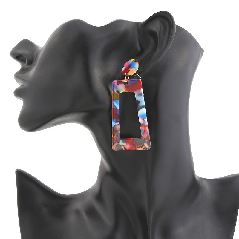 Women's Simple Accessories Acetate Acrylic Lacquer Light Luxury Earrings Niche Jewelry Fashionable Quadrilateral Elegant New Style
