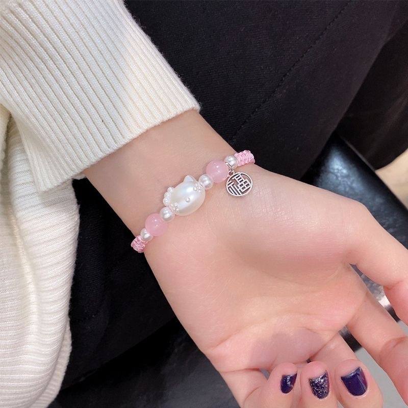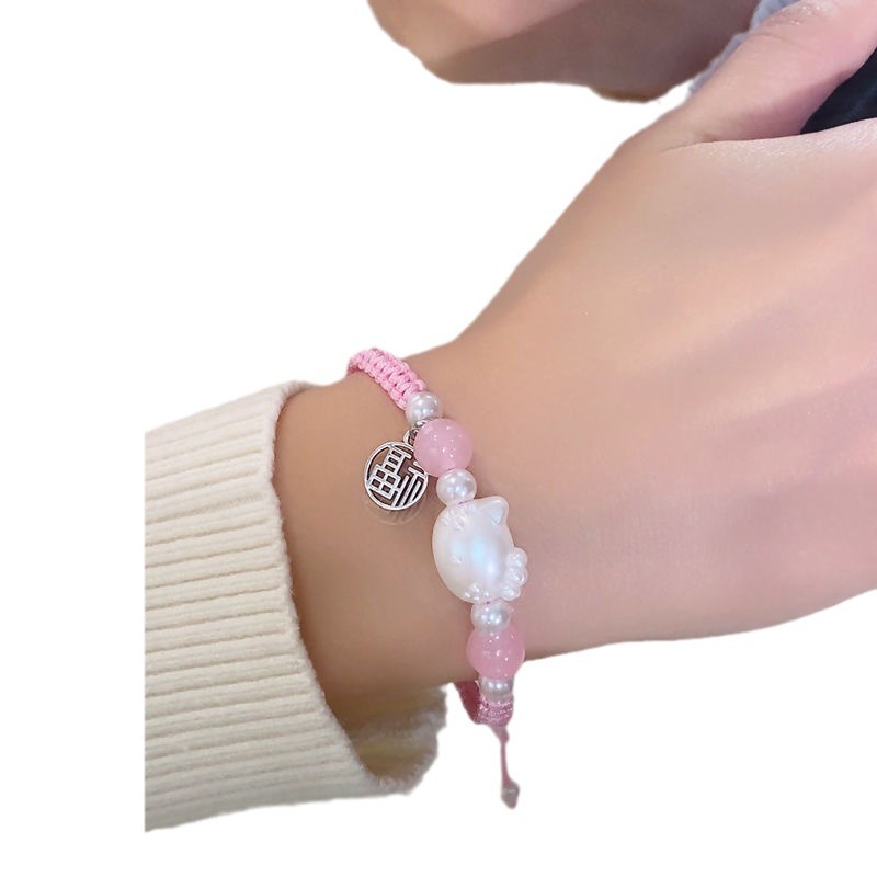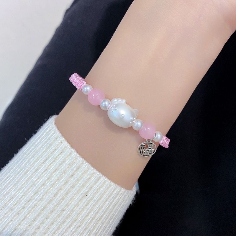 Douyin same style KT cat bracelet female ins simple cute handmade woven couple bracelet for girlfriend gift