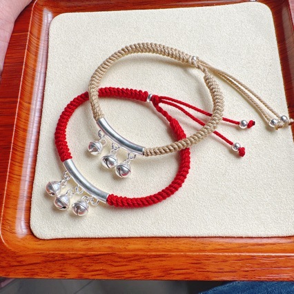 Pure Silver 999 small Bell elbow braided rope chain one step sterling silver ancient style new Chinese bracelet for girlfriend girlfriend