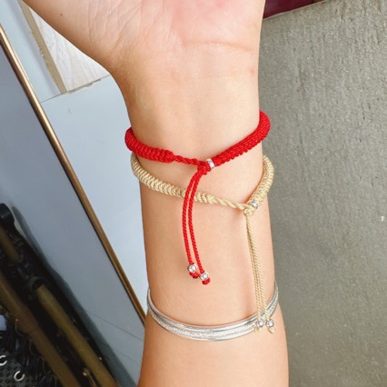 Color: Elbow three Bell wine red bracelet