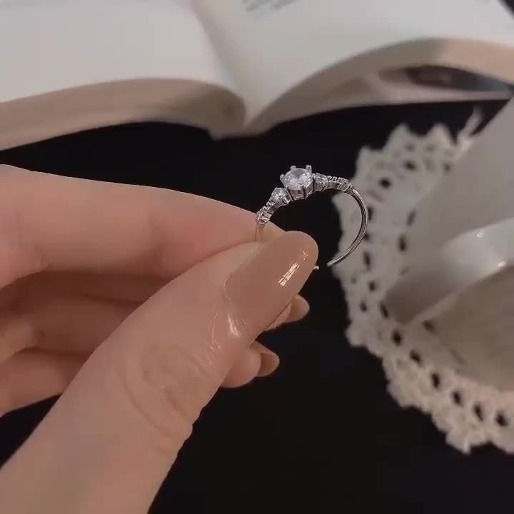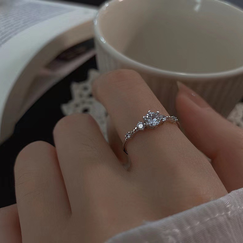 S925 sterling silver zircon ring female cold fashion personality imitation diamond ring index finger ring opening adjustable ring