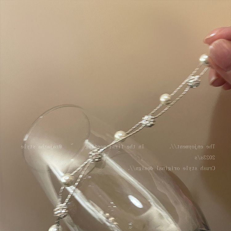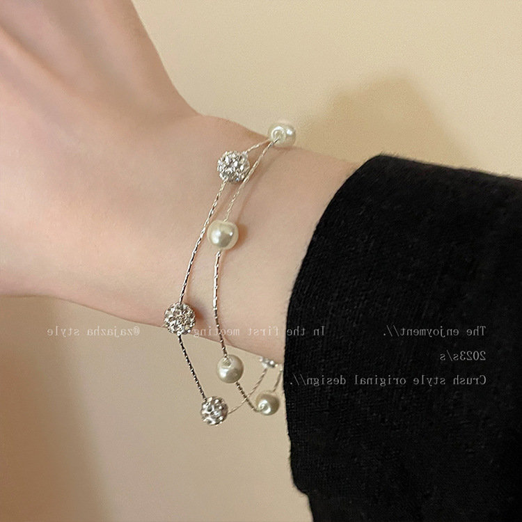 Laser ball Pearl double-layer bracelet female niche design retro personality simple all-match temperament fashion bracelet