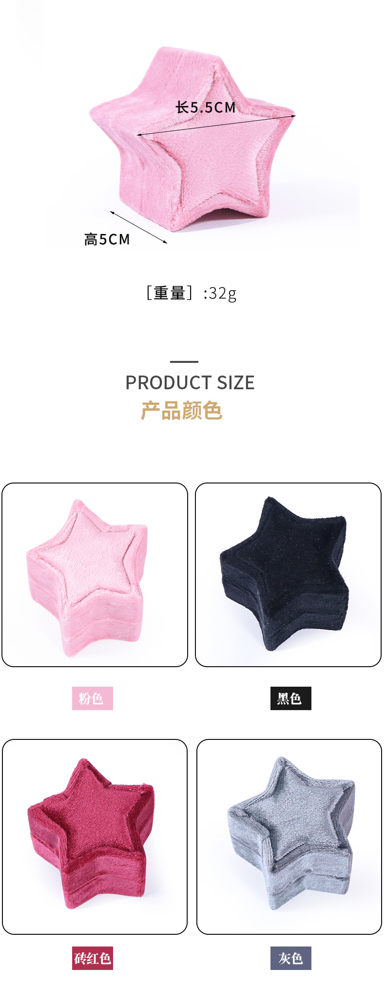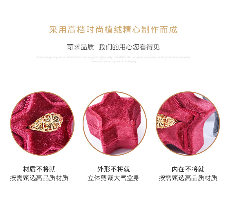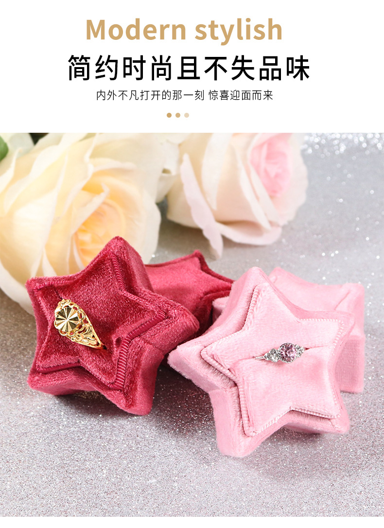 Velvet ring box wedding one star creative jewelry packaging velvet stud earrings ring jewelry box in stock