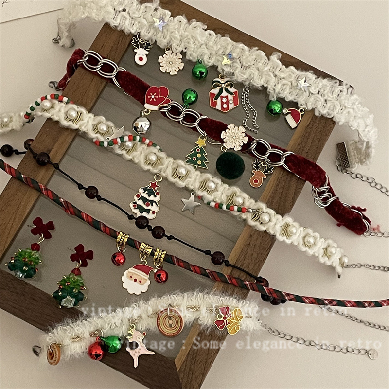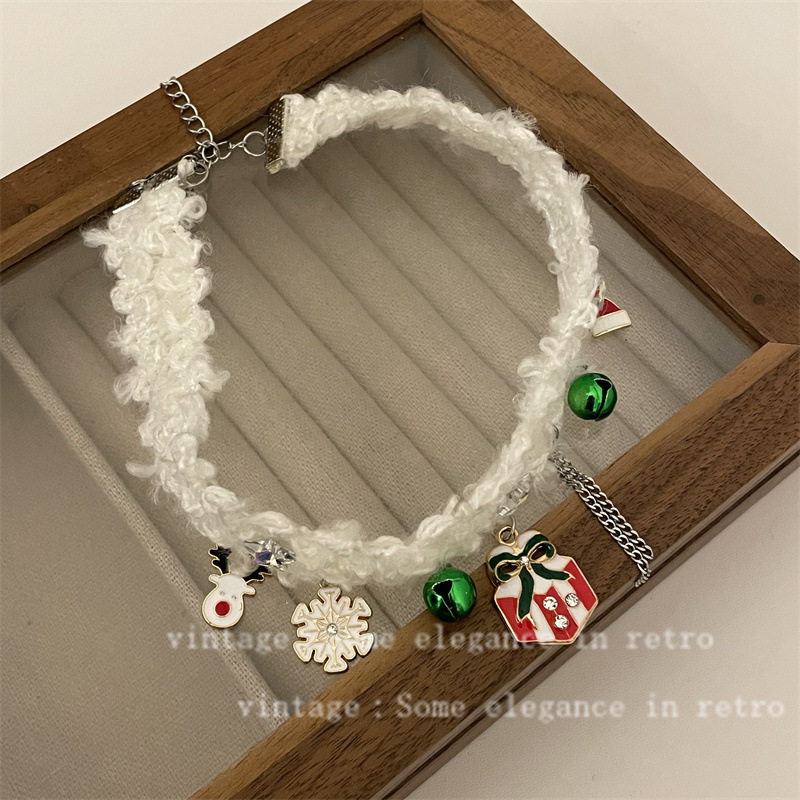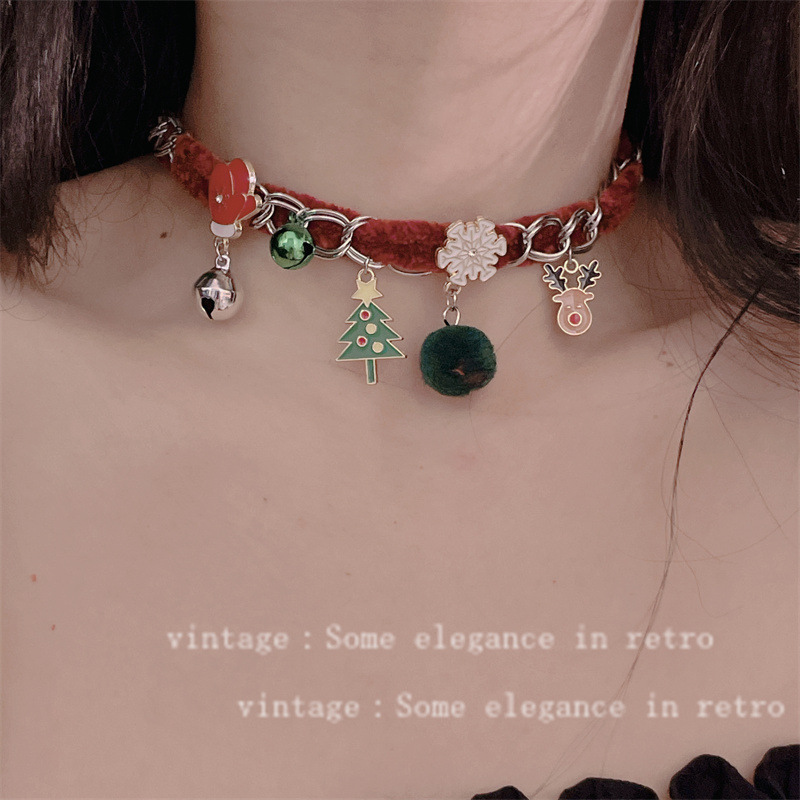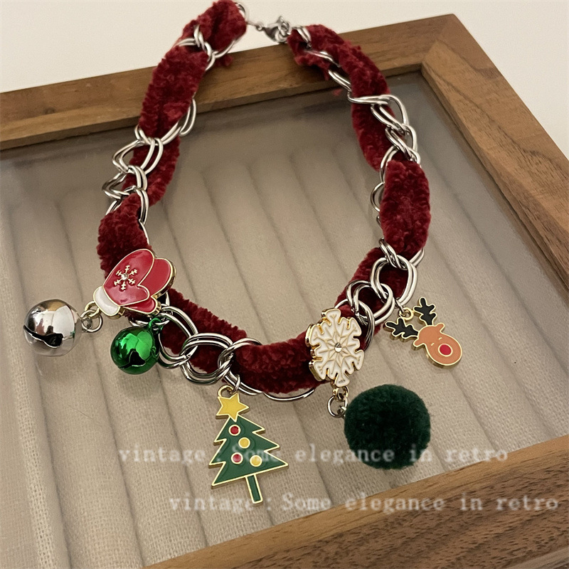 S4红色丝绒缠绕圣诞树铃铛项链重量约: 22.9克
