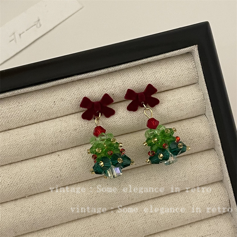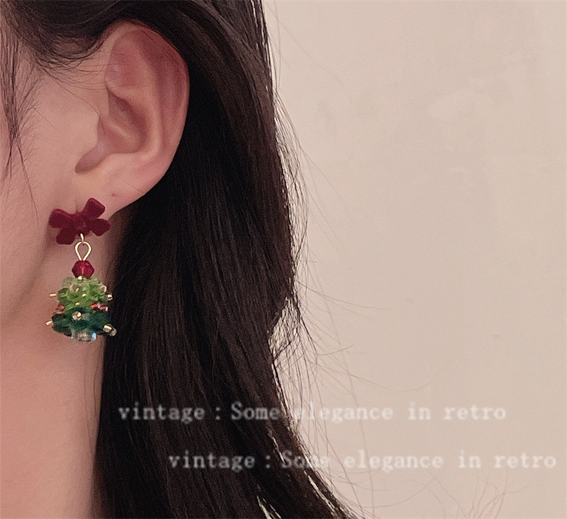S5红色蝴蝶结圣诞树耳环重量约: 12.3克