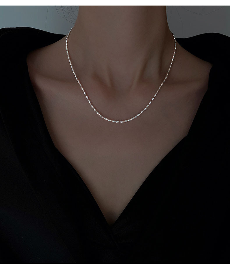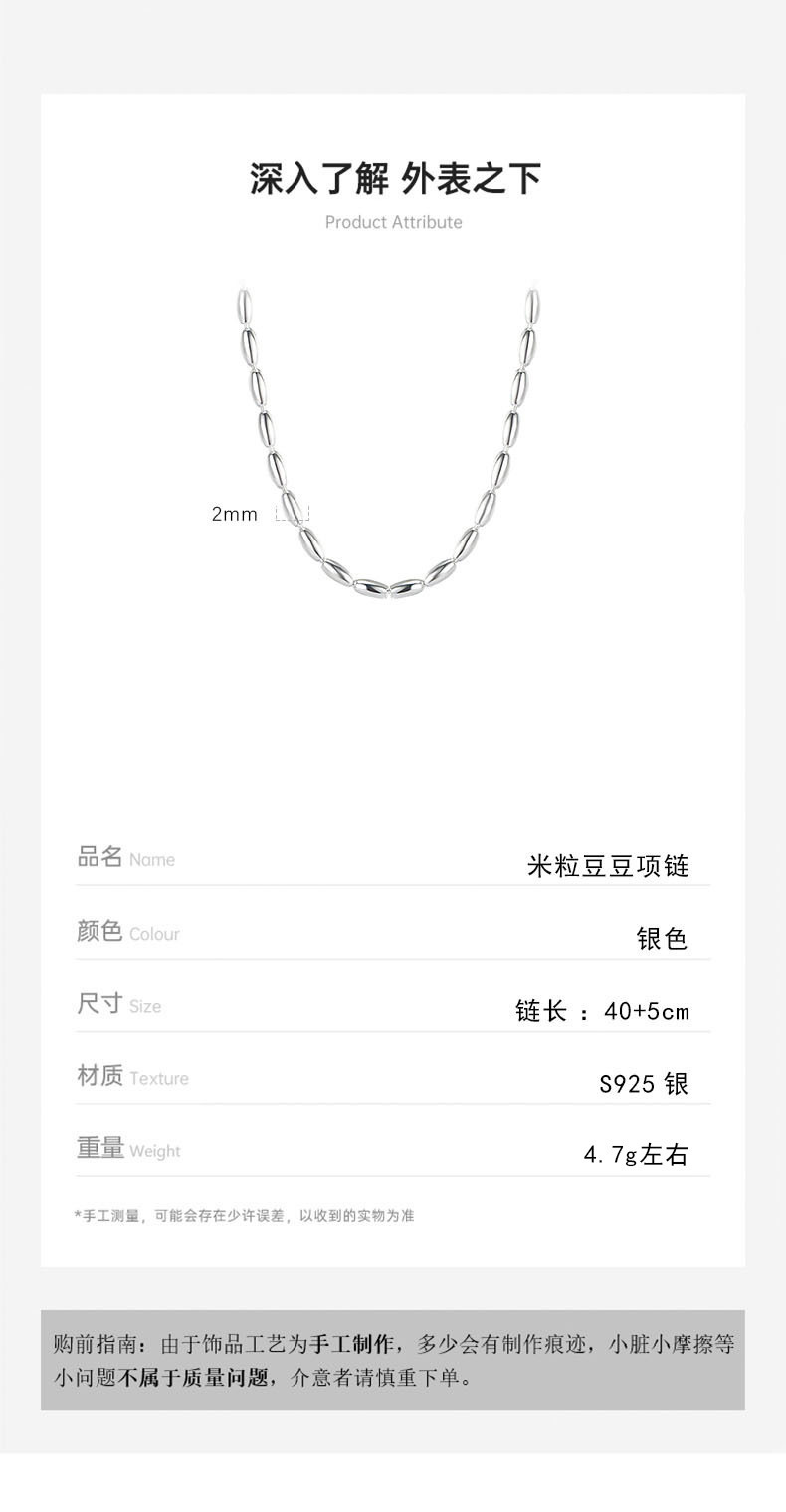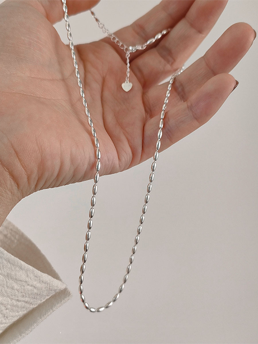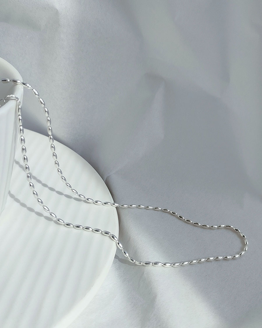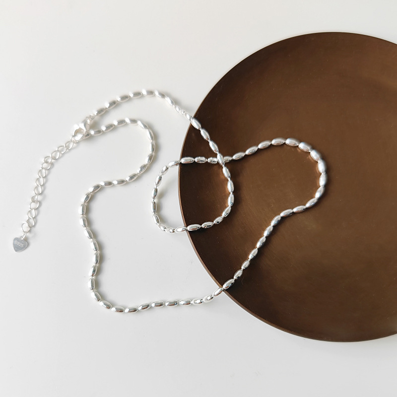 S925 sterling silver rice grain olive bead necklace female plain chain personality simple stacked high-grade sense niche round bead clavicle chain