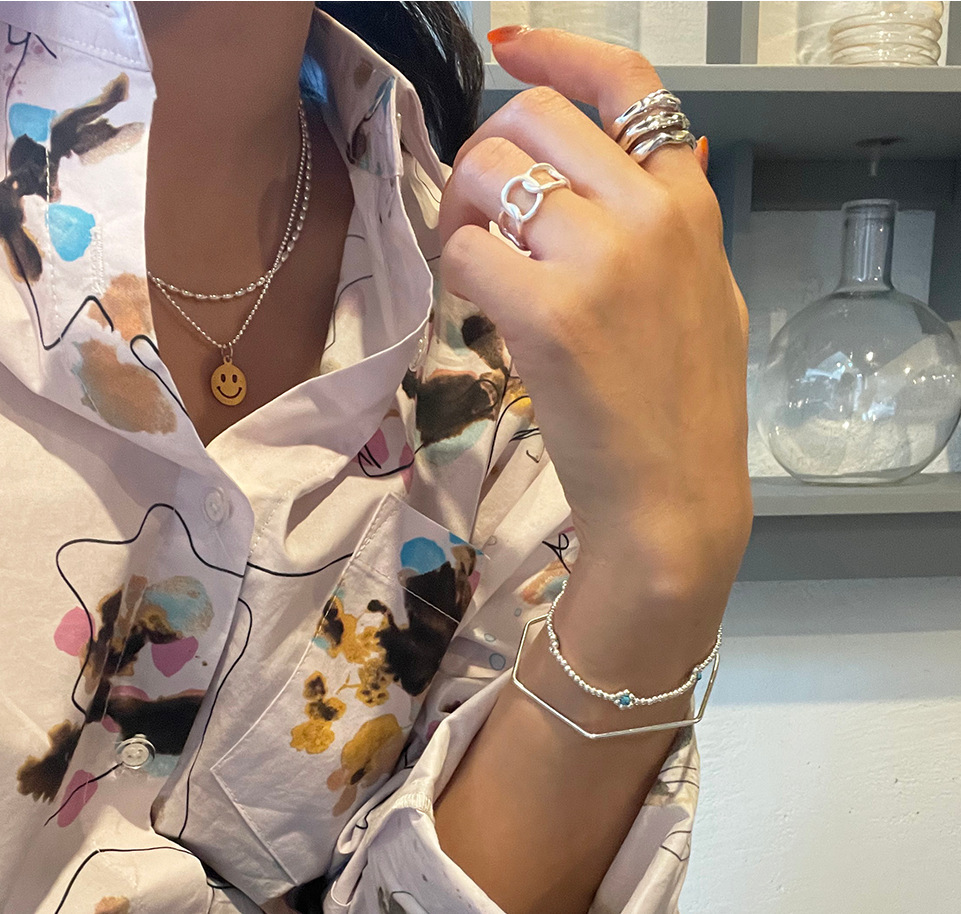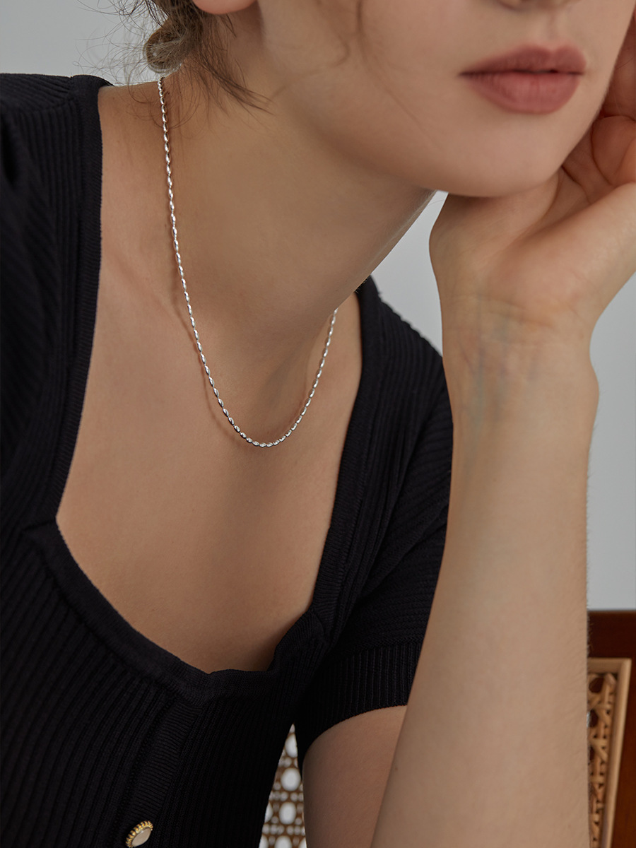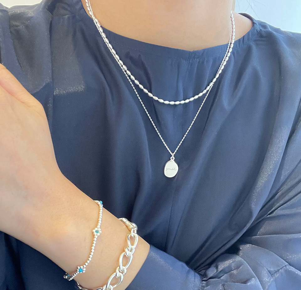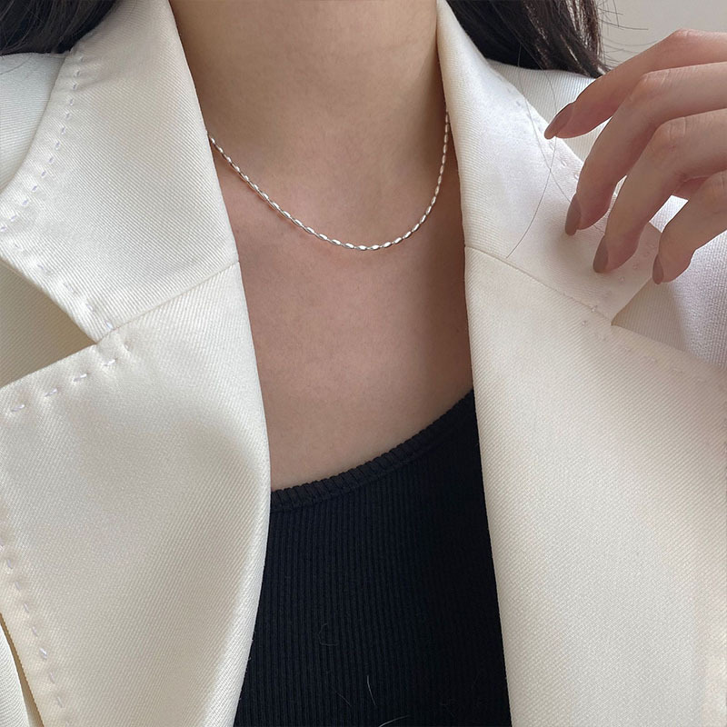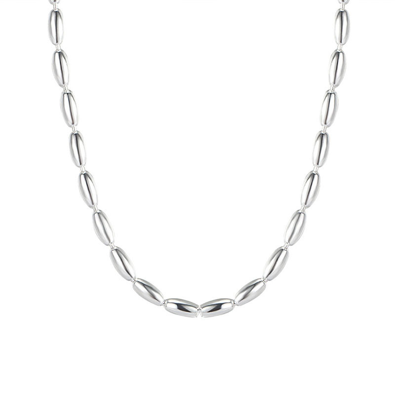S925 sterling silver rice grain olive bead necklace female plain chain personality simple stacked high-grade sense niche round bead clavicle chain
