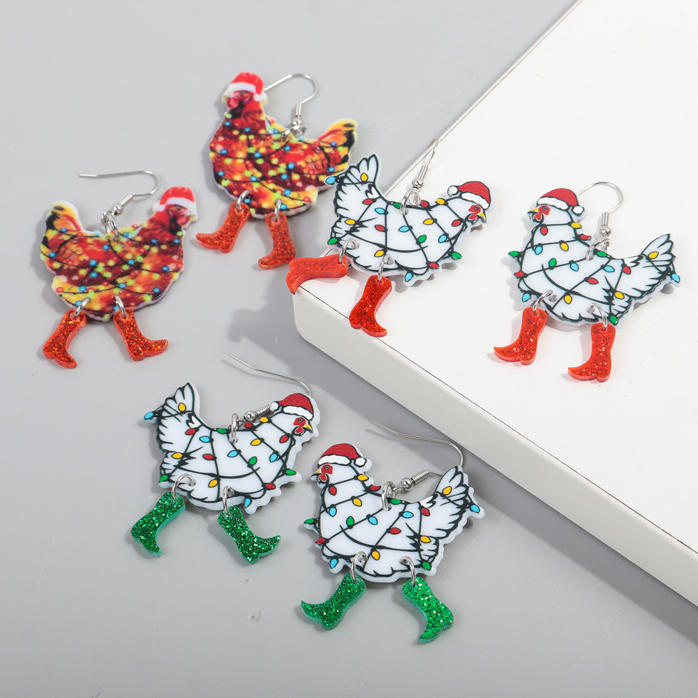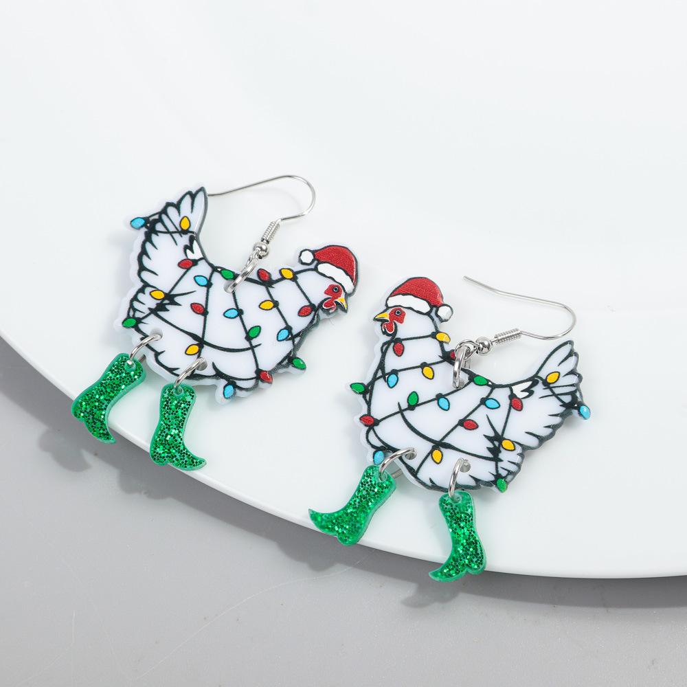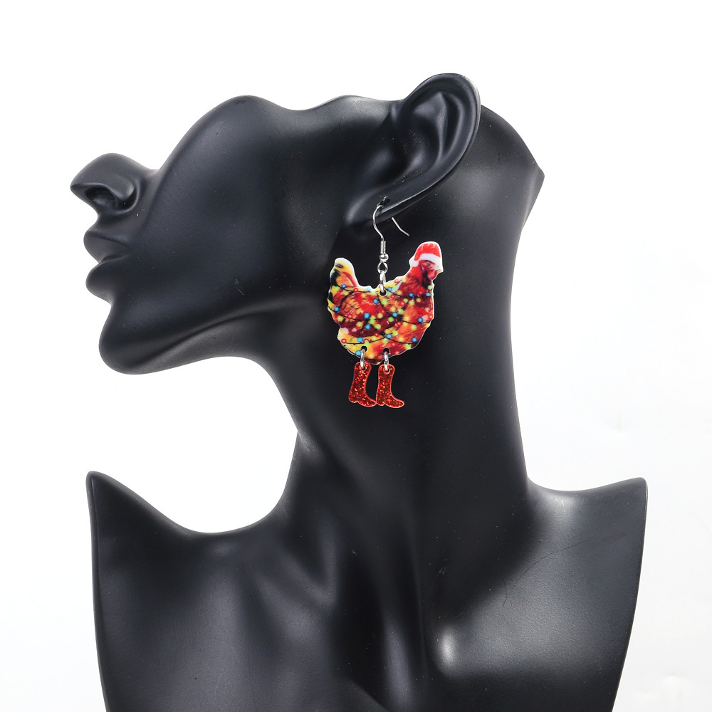 Cross-border European and American Christmas chicken earrings acrylic creative funny Bell Christmas chicken Christmas cat animal earrings earrings