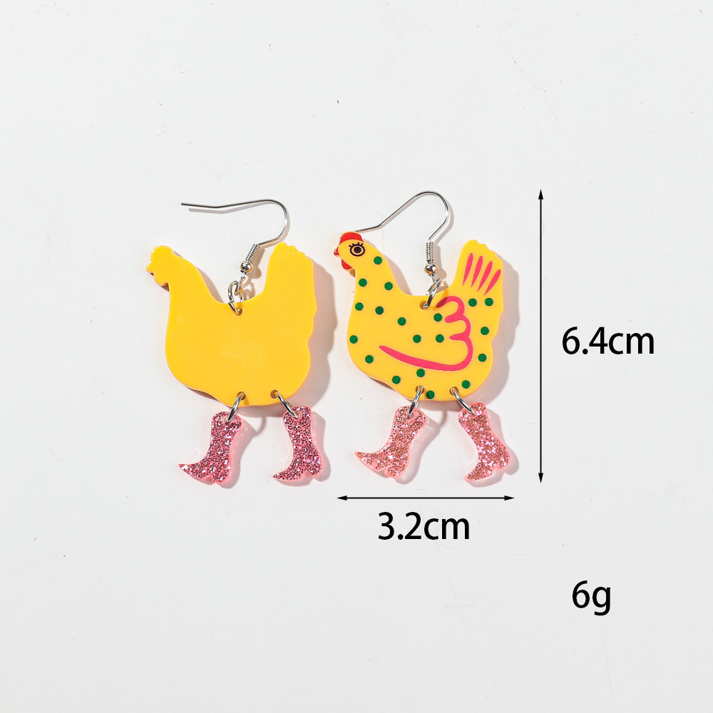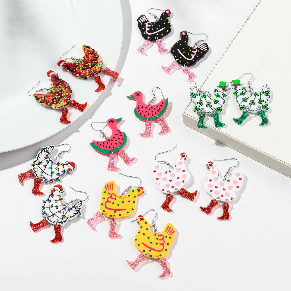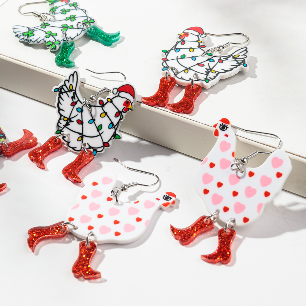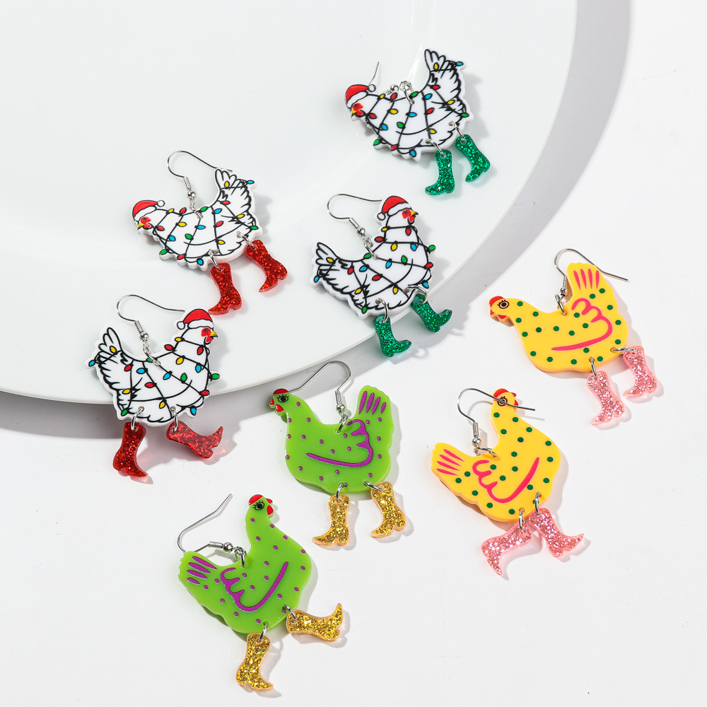 Cross-border European and American Christmas chicken earrings acrylic creative funny Bell Christmas chicken Christmas cat animal earrings earrings