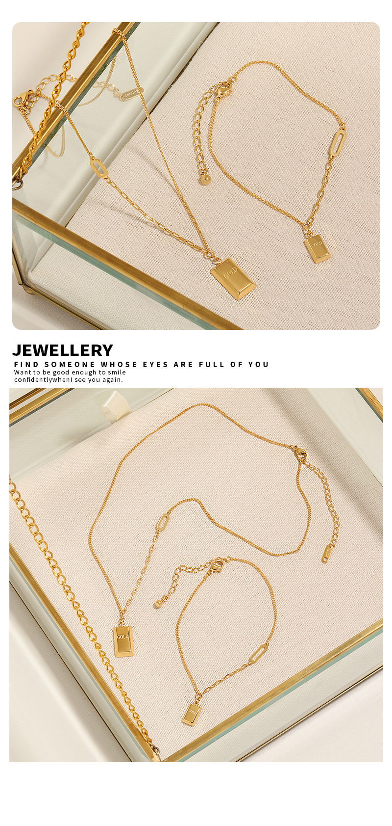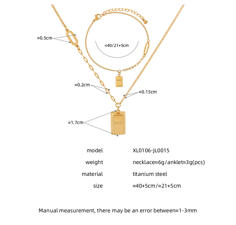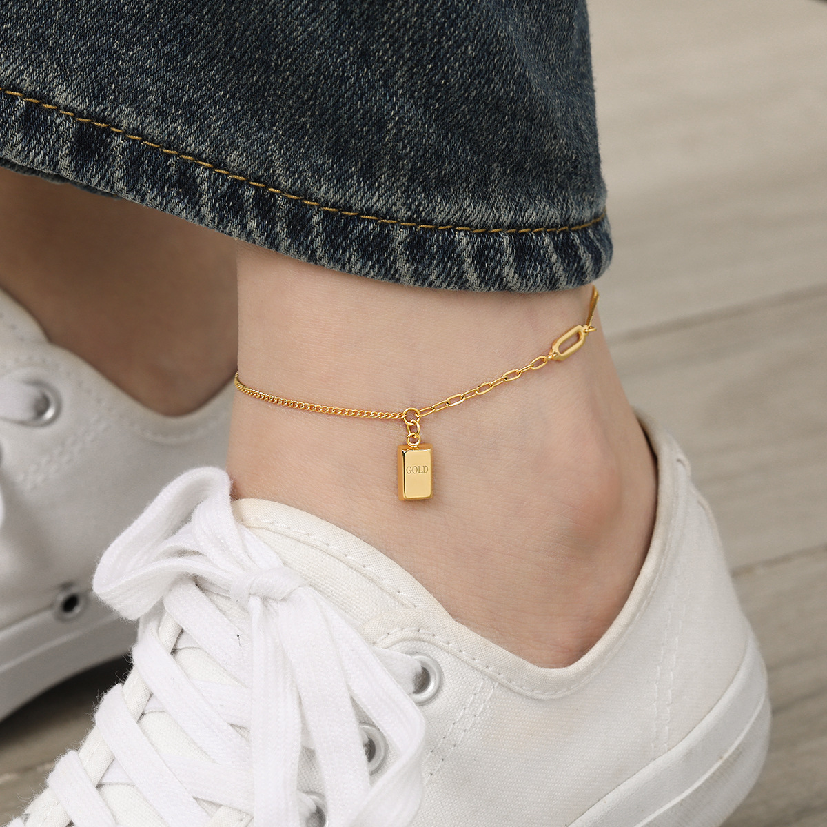 Korean-style ins niche high-grade light luxury rich Gold small Gold Gold bar titanium steel necklace women's anklet jewelry suit