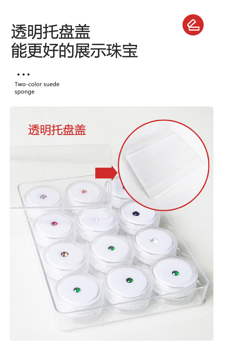 Jewelry Beads Colored Treasure Loose Diamond Ring Surface Plastic Box Acrylic Tray with Lid Sample Storage Display Classification Transparent