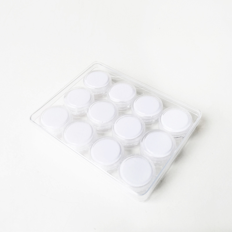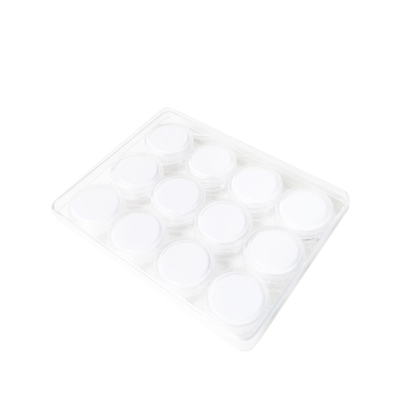 Specification model: 12 small rotating lid boxes in plastic plates with lids and white cotton; tray with lids