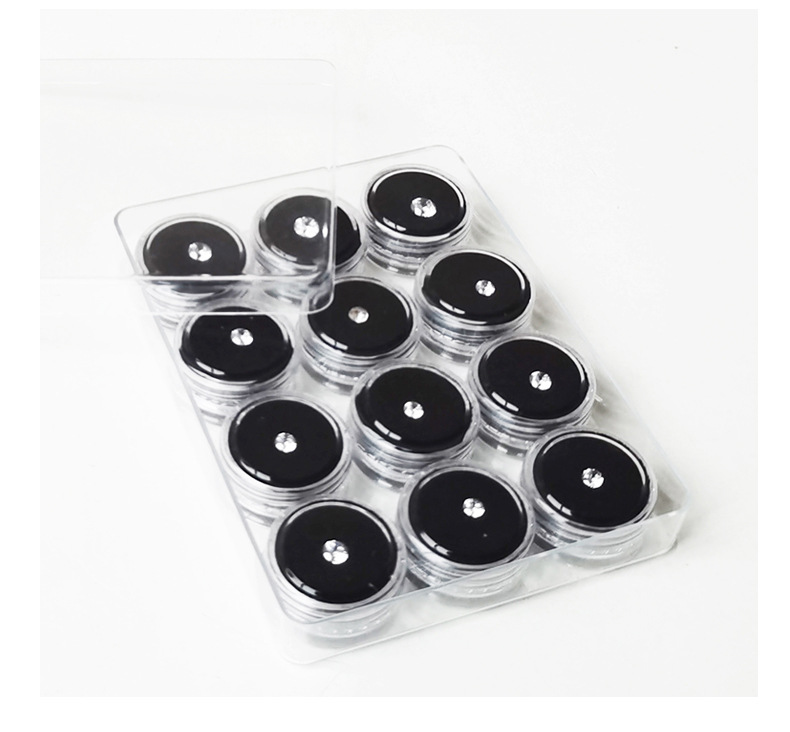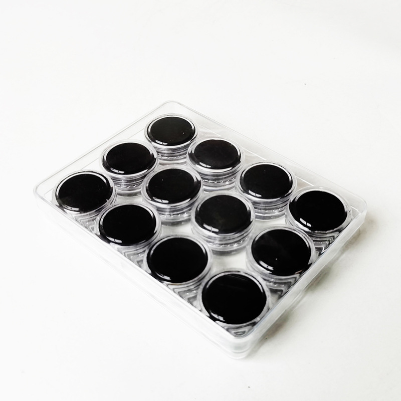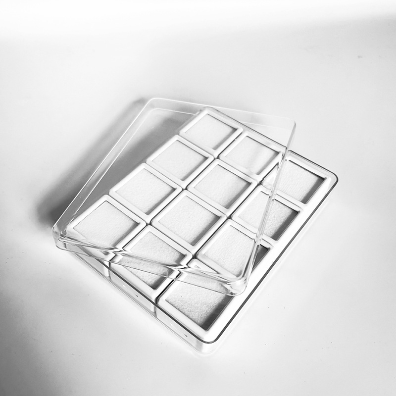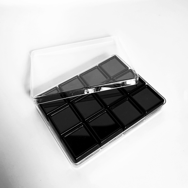 Specification model: Plastic plate with lid, 12 black square boxes and black cotton; tray with lid
