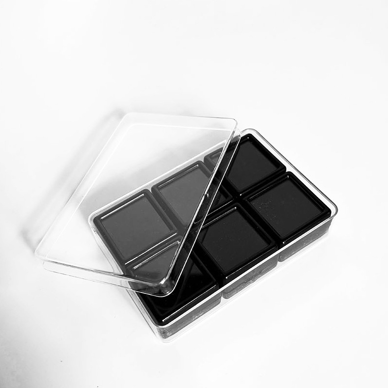 Specification model: Plastic plate with lid, 6 black square boxes and black cotton; tray with lid