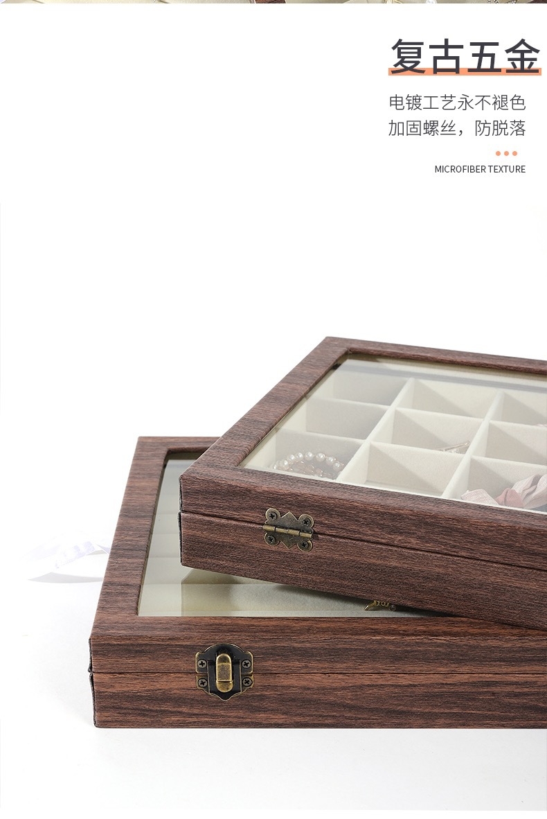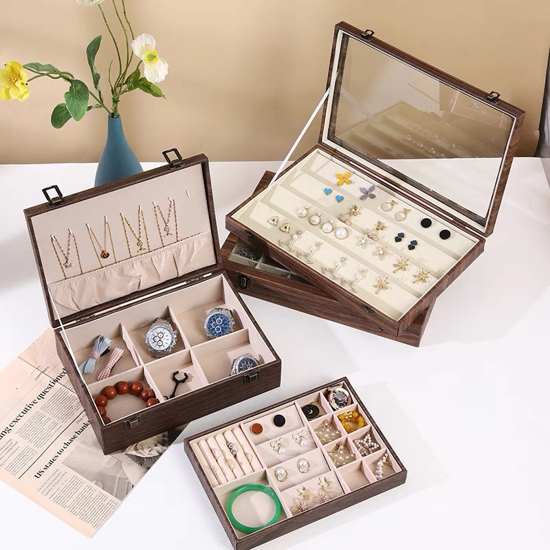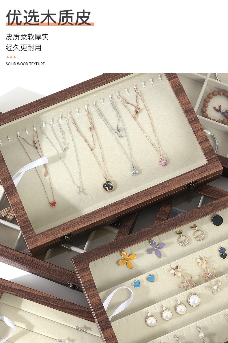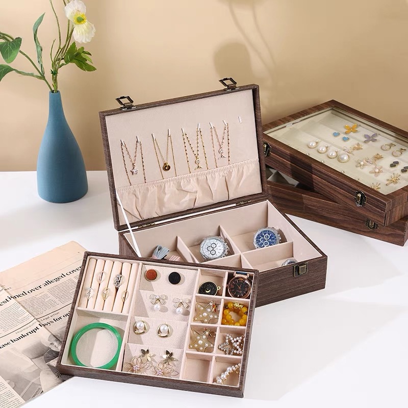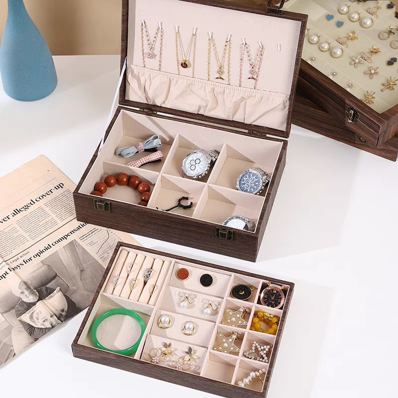 Vintage wood grain double-layer large capacity jewelry storage box dustproof jewelry box with lid ring necklace earrings jewelry box