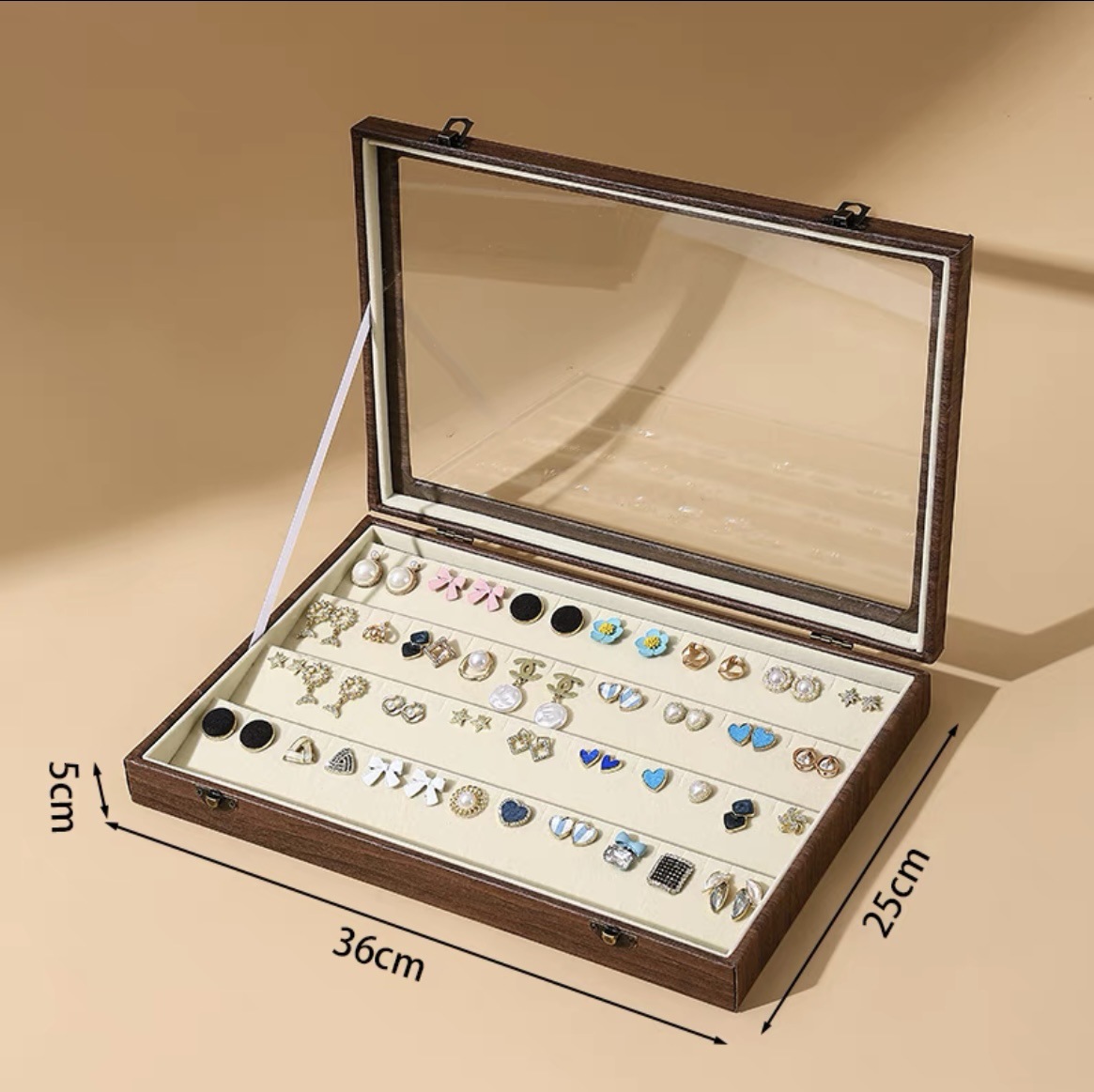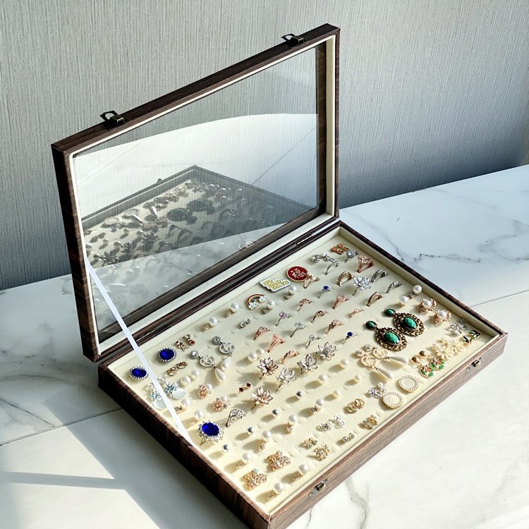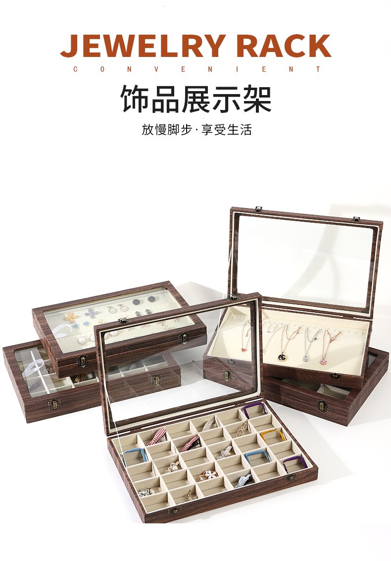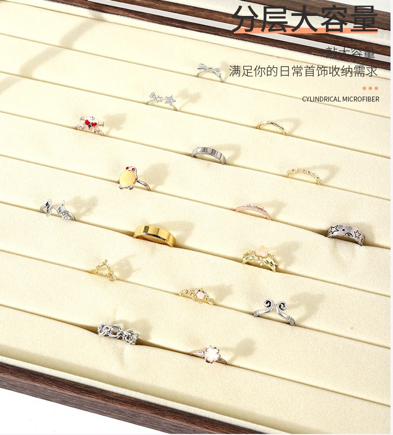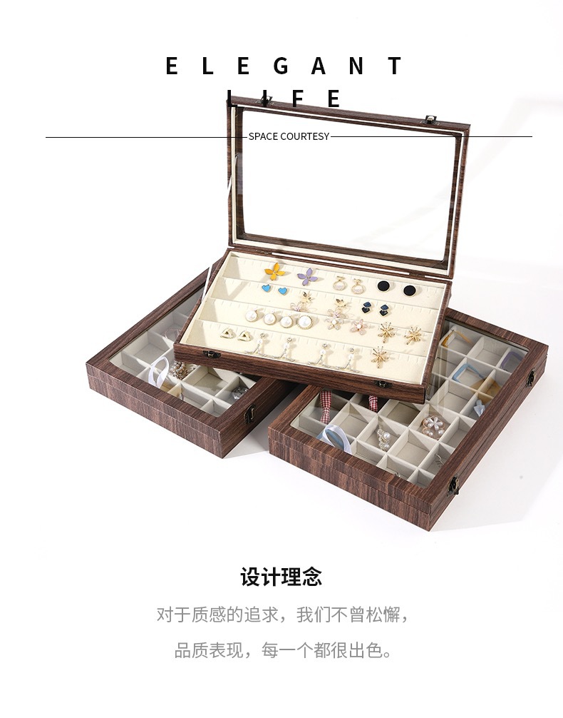 Vintage wood grain double-layer large capacity jewelry storage box dustproof jewelry box with lid ring necklace earrings jewelry box