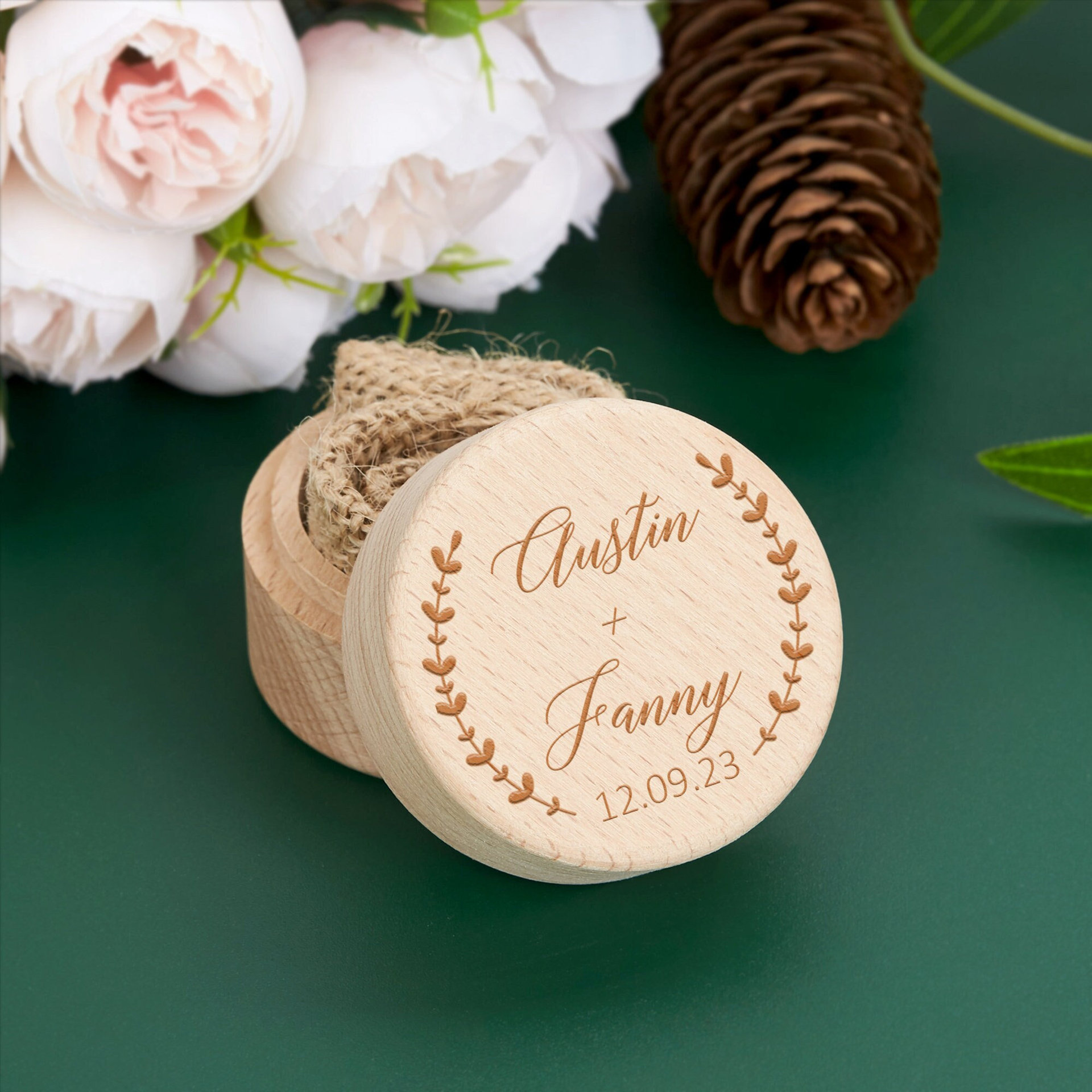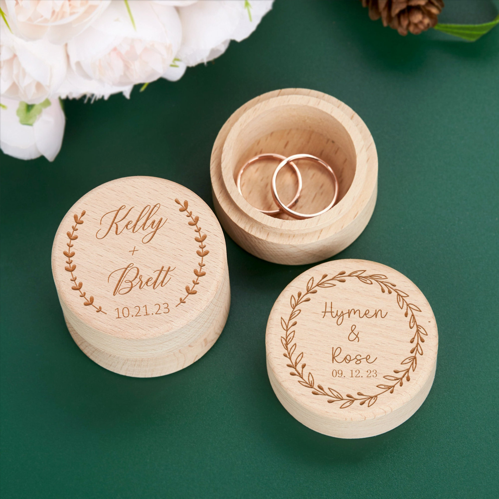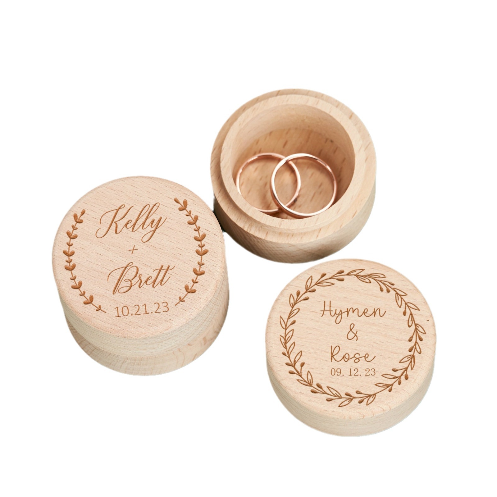Wooden ring box personalized wooden round ring box for wedding engagement proposal printing pattern