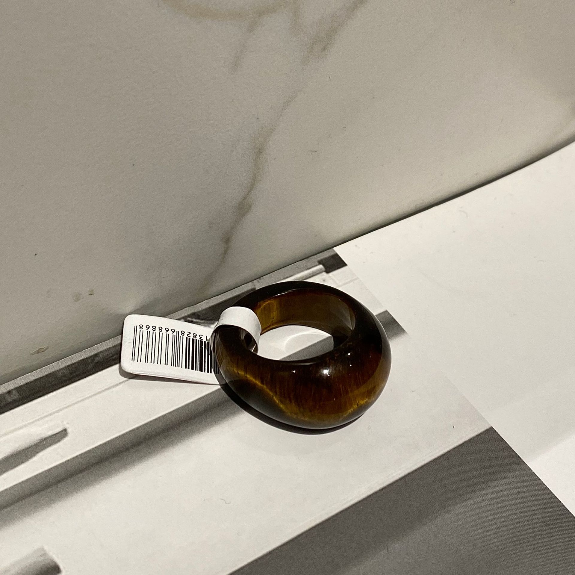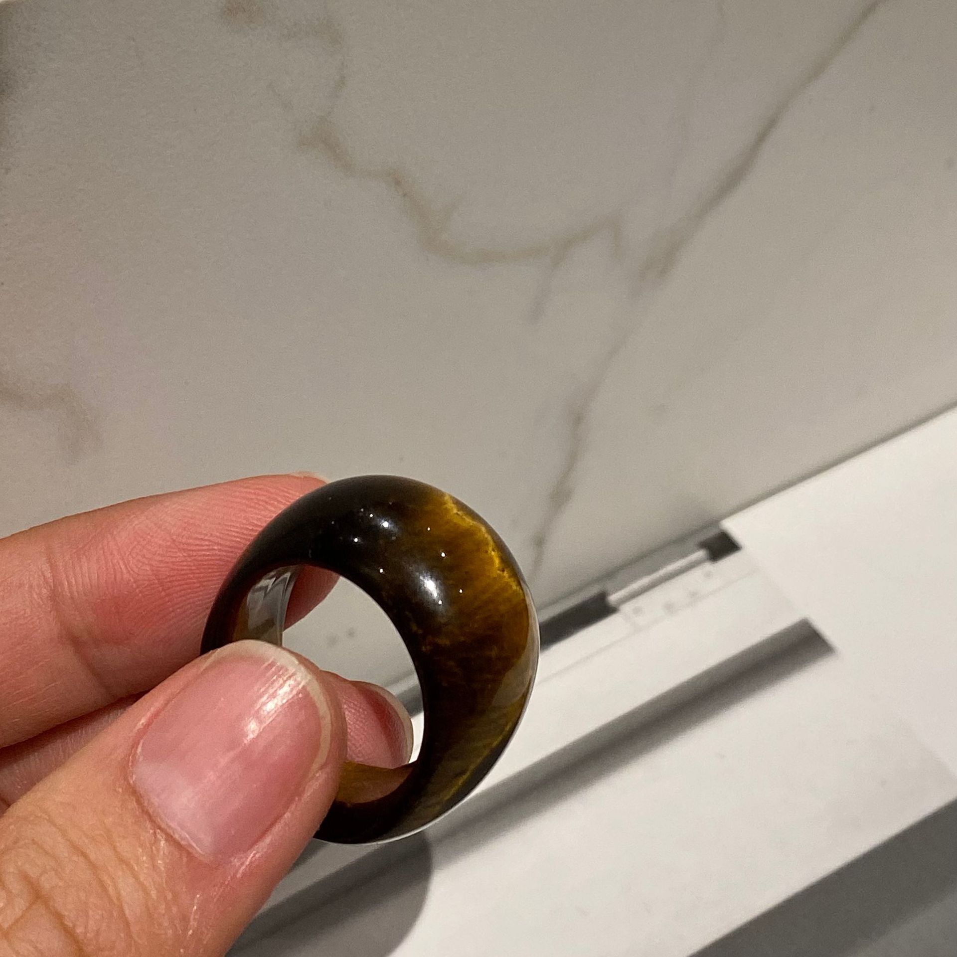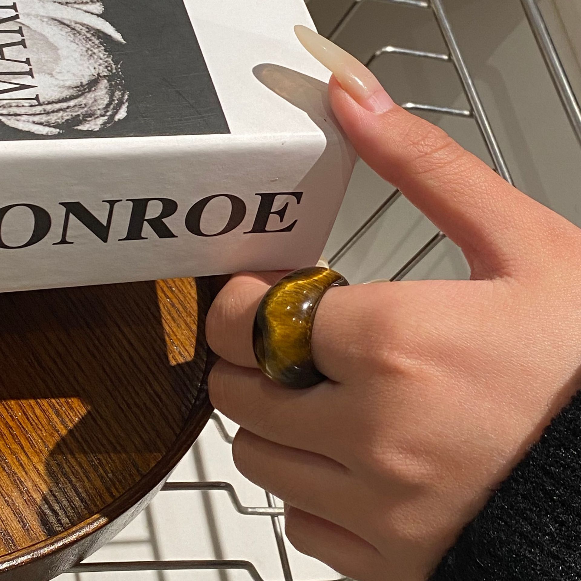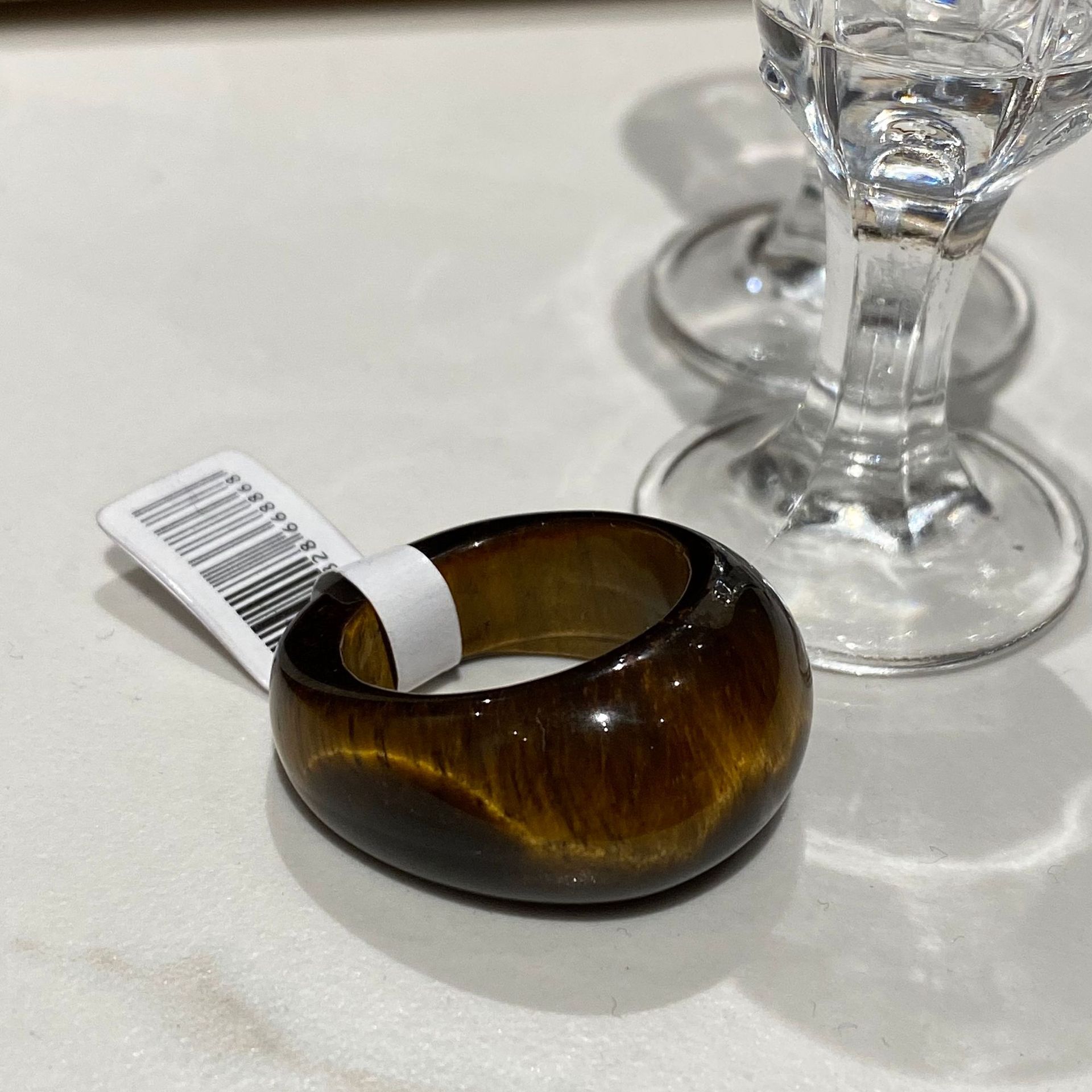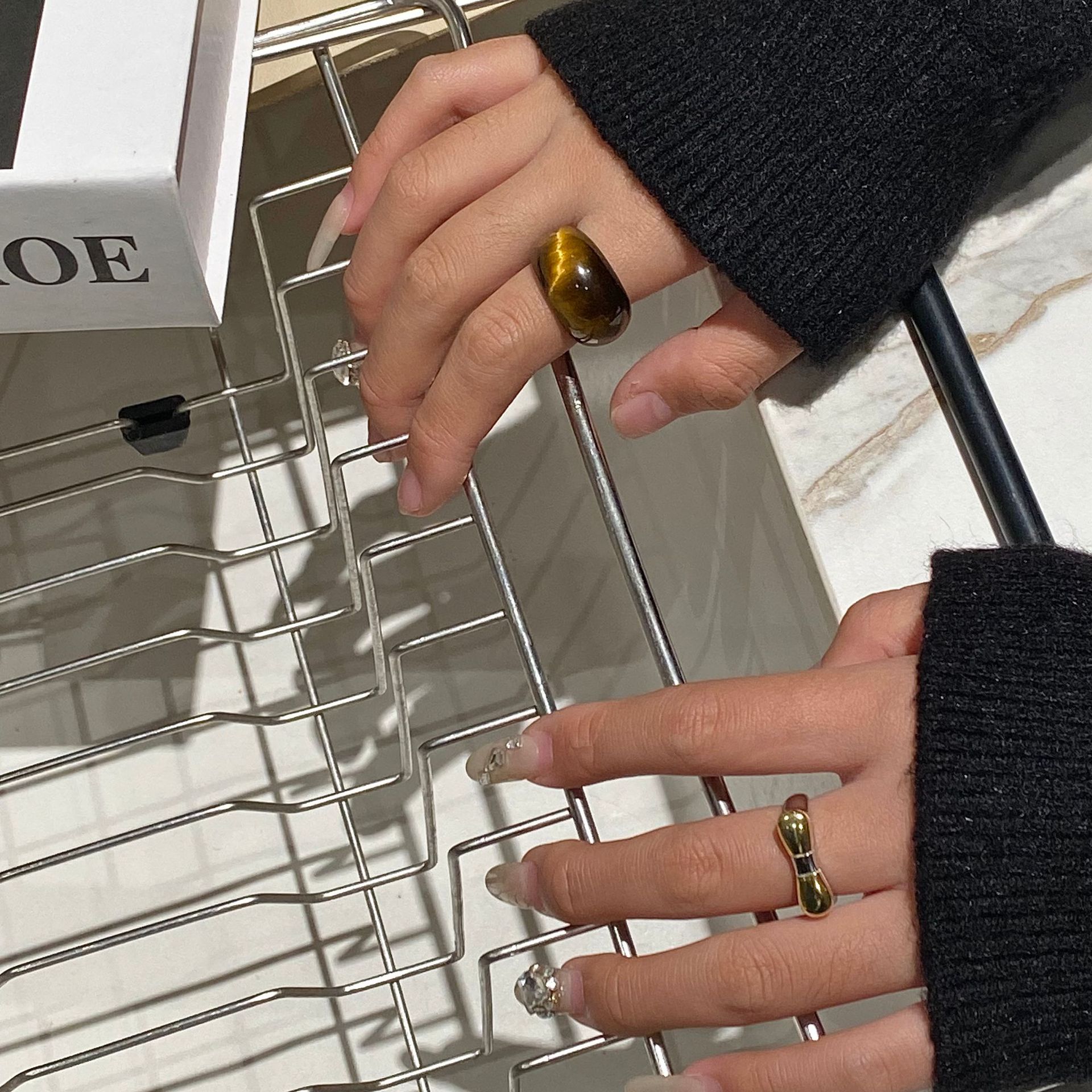 Maillard color French Tiger Eye stone ring autumn and winter light luxury all-match niche design high sense ring Amber