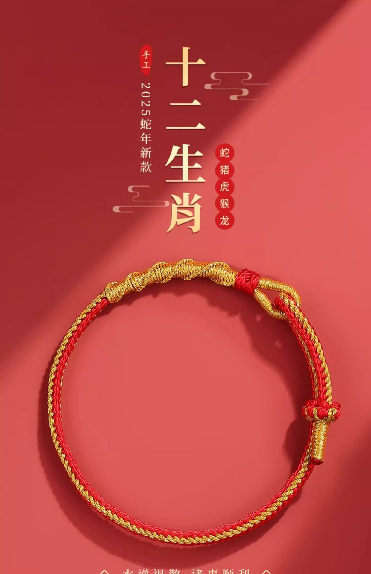 Year of the Snake 2025 Year of the Snake Tai sui Red Rope Bracelet Female Dragon Rope Snake Amulet Hand Rope Gift for Men