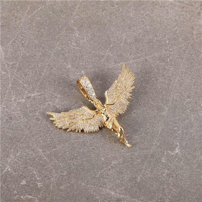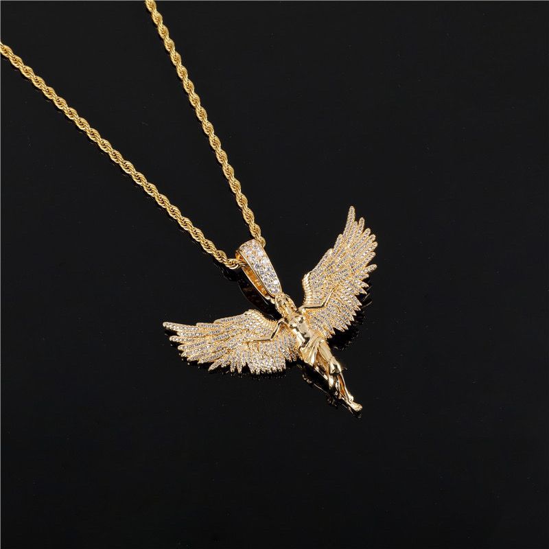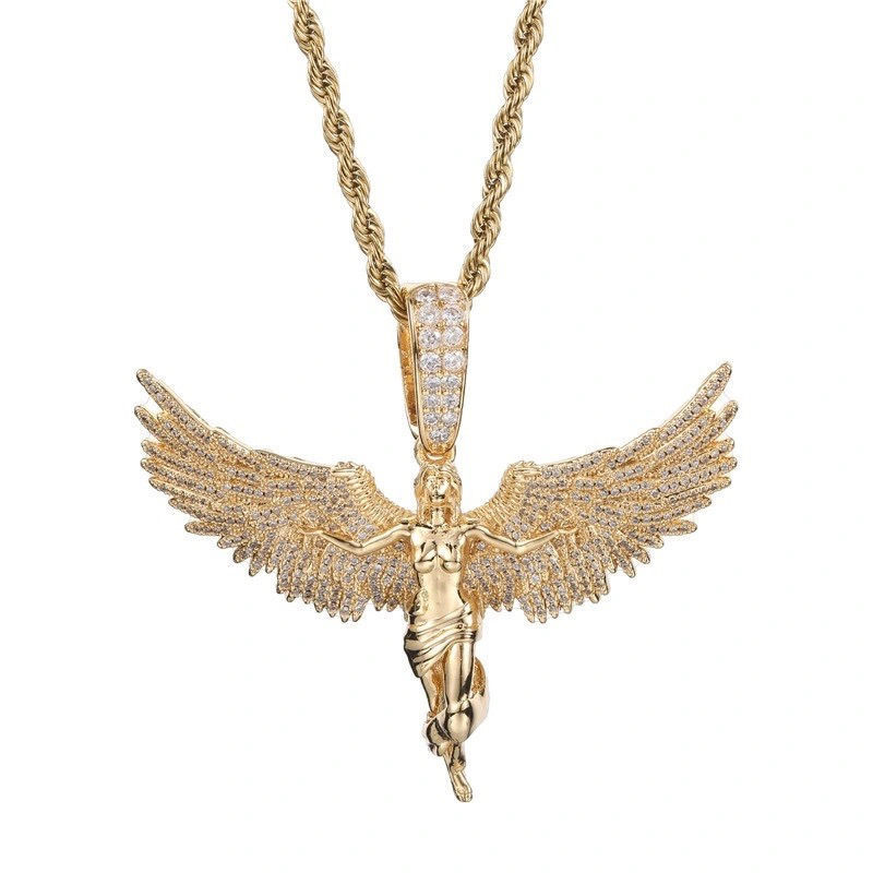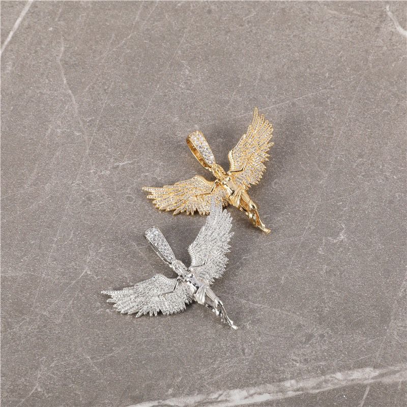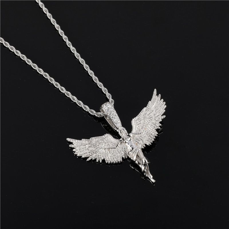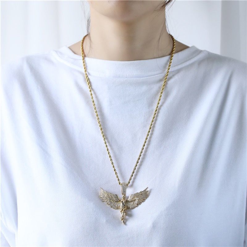 Retro Angel Wings Pendant Unisex Silver Inlaid Zircon Angel Wings Men's and Women's Easiest for Match Rap Hip-Hop Trend Necklace