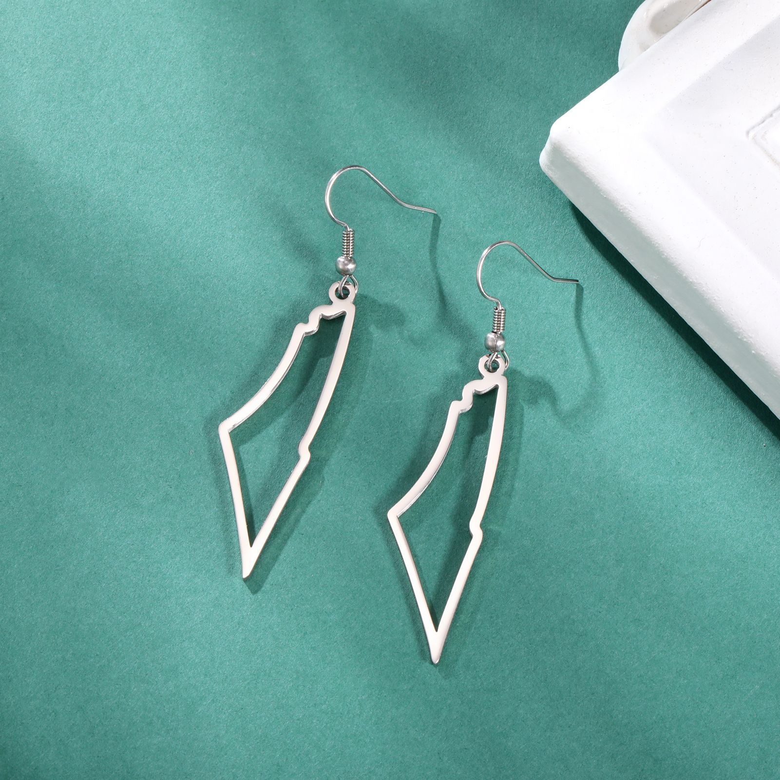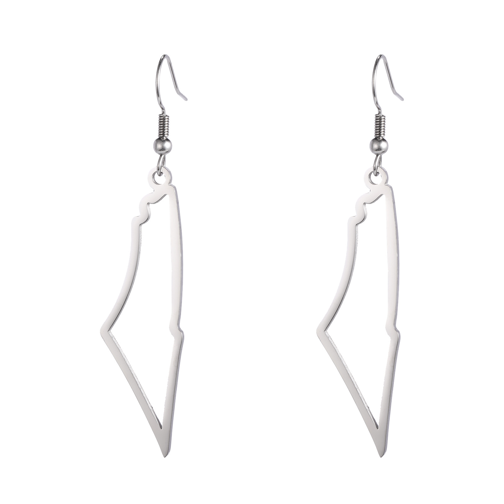 Foreign trade fashion temperament simple European and American geometric Israel map rules Hollow Mountains pendant stainless steel earrings
