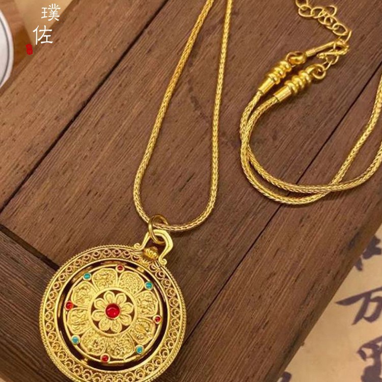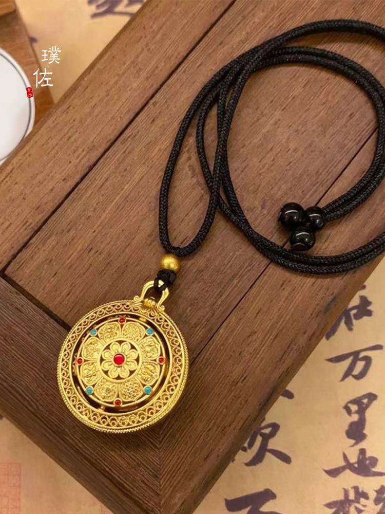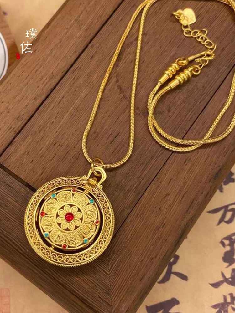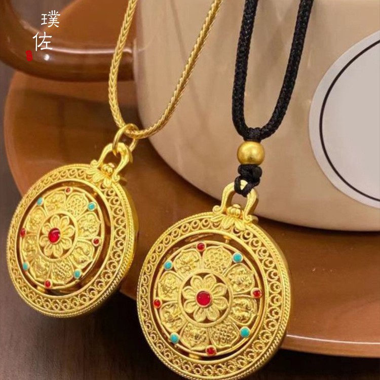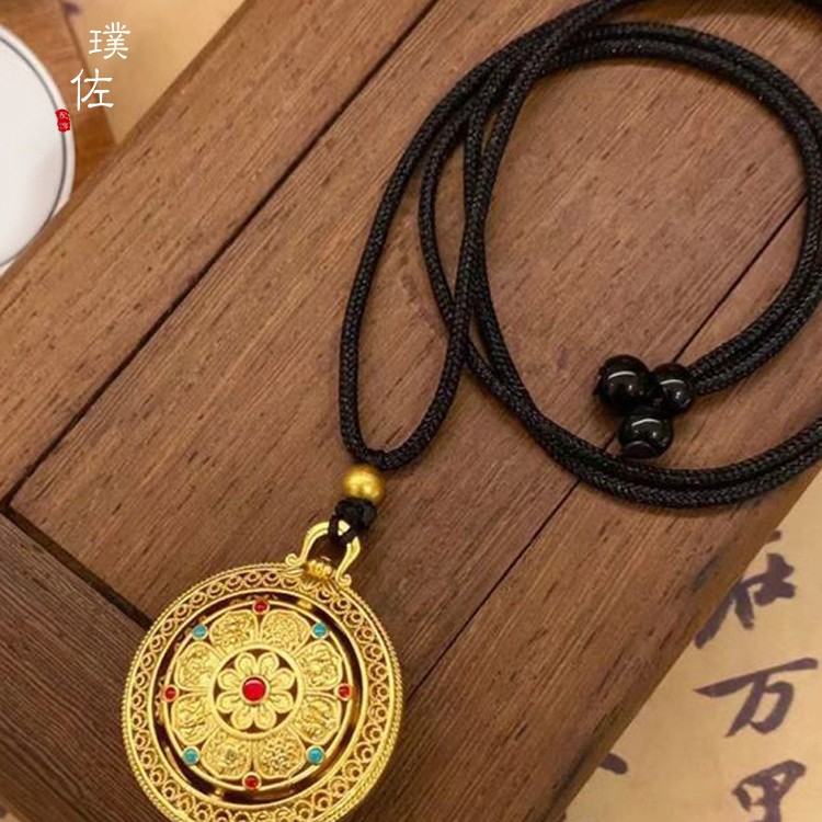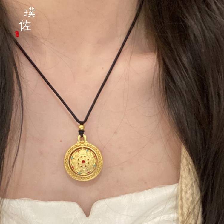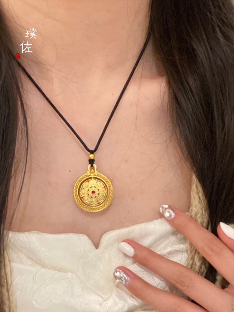Time and Time Eight Treasure Compasses Gold Pendant Necklace Black Rope Braid Rope Pendant Disc Women's New Light Luxury